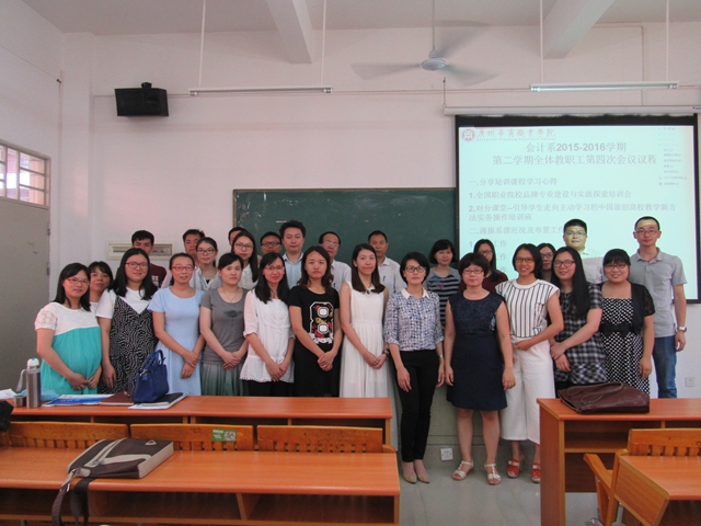 2016年5月31日(周二)下午4:00,我系在博学楼B204召开了本学期全体教职工第五次会议。 会议内容包括两部分:一.分享培训课程学习心得。1、全国职业院校品牌专业...