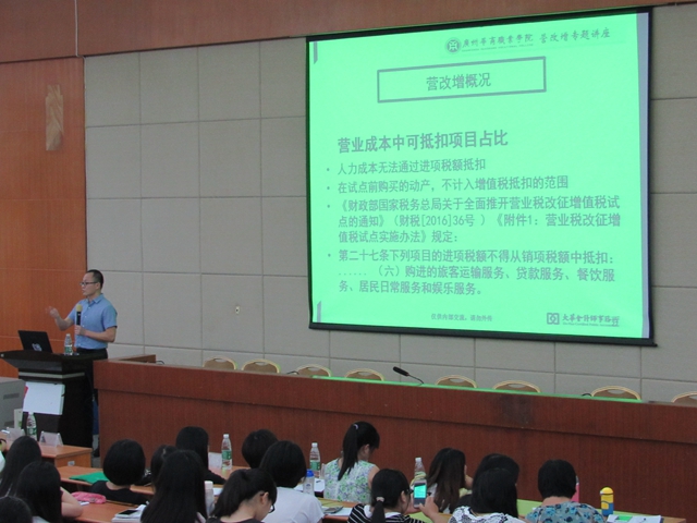 我系于6月21日(周二)10:15在励志楼C208隆重召开了关于《营改增背景下的业务、财务、税务和法务协同》专题报告会,主讲是 太阳城集团财务顾问,大华会计师事务所(国...