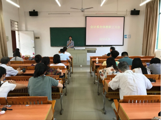 我系于6月26日下午14:00在博学楼B406召开全体教职工会议。 首先,系学工副主任、系党总支何标书记强调关于学生安全、系部活动等相关注意事项。其次,李琨老师提醒相关...