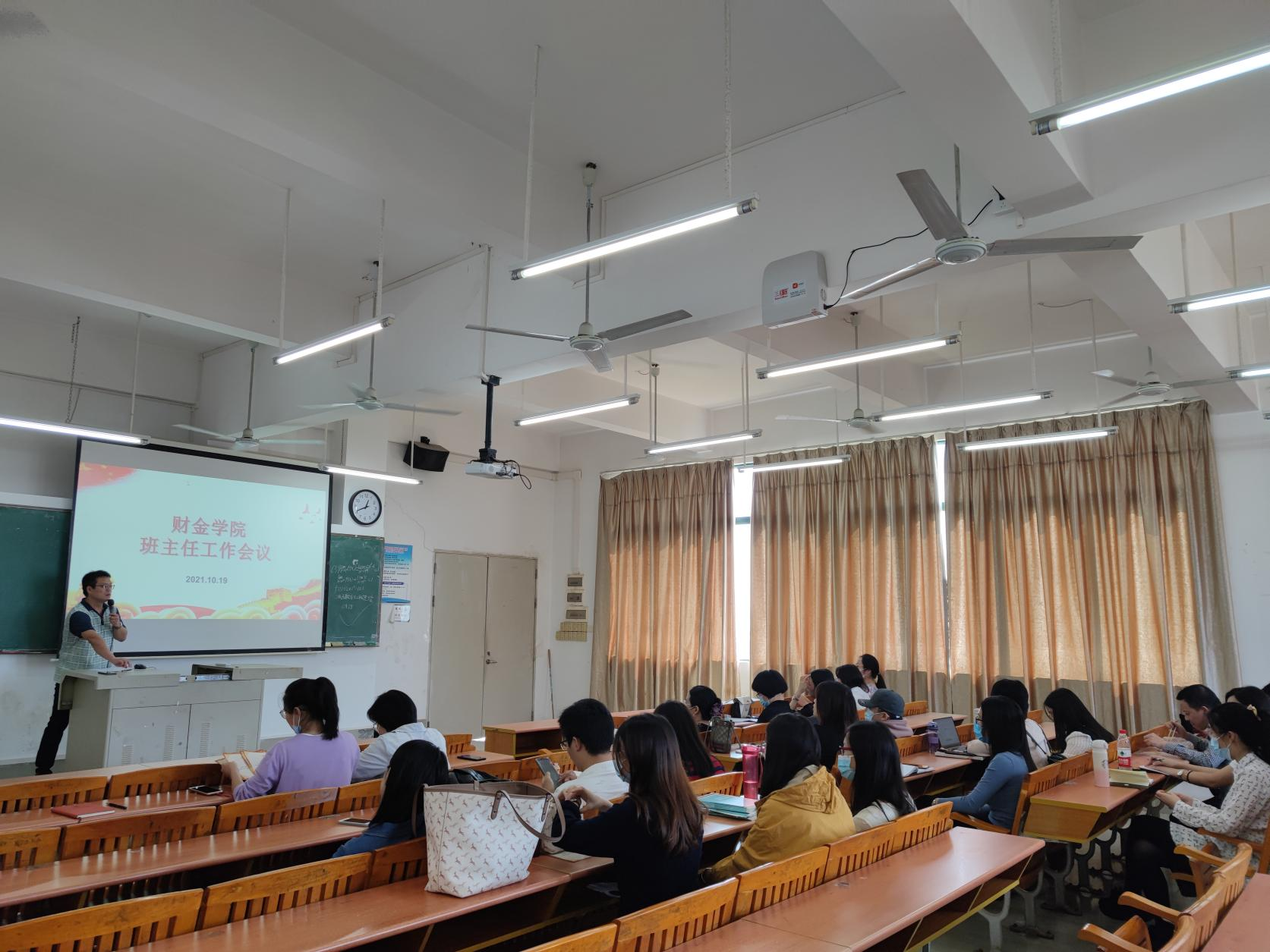 为了加强班主任专业建设,全面加强班级管理,促进班主任工作规范、科学、健康发展,财金学院于10月19日12:10分召开了2021年秋季学期班主任工作会议。本次会议参与人员为...