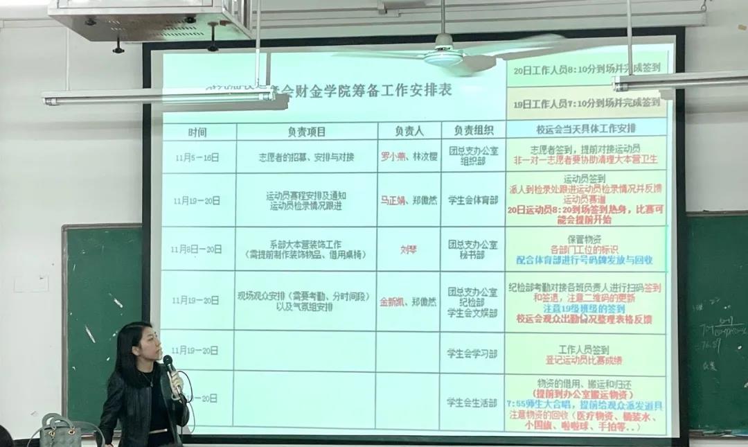 为积极响应学校开展第九届田径运动会的号召,充分调动运动员士气与志愿者工作的热情。财金学院于2021年11月18日晚9:00在博学楼C301隆重召开“财金学院第九届校运会动员...