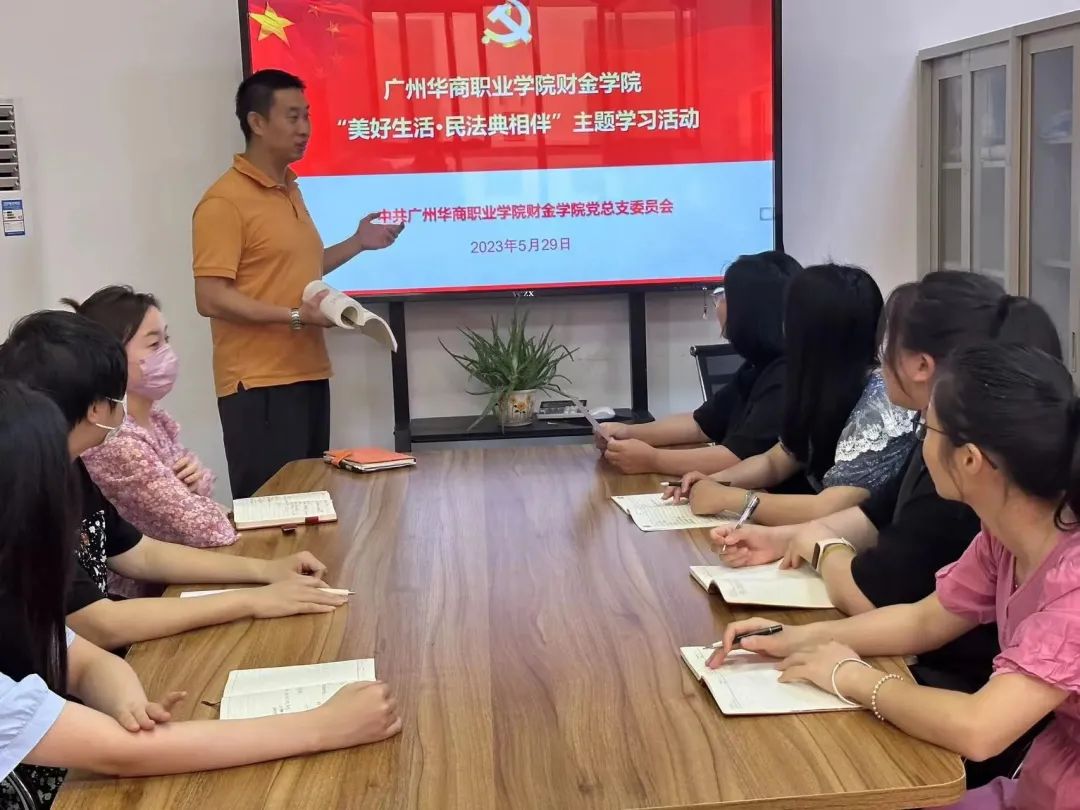 2023年5月29日下午17:00在博学楼A509会议室,财金学院党总支召开“美好生活,民法典相伴”主题学习活动,顾晖书记主持本次会议。 会议伊始,顾晖书记带委员们学习了...