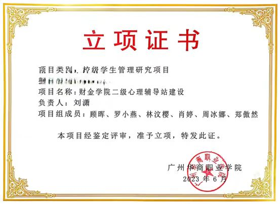 为进一步推进《高等学校学生心理健康教育指导纲要》落地落实,提高我们高职学生心理健康素质,更好地适应和满足学生心理健康的服务需求,财金学院2022年10月正式申报建...