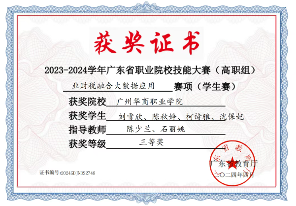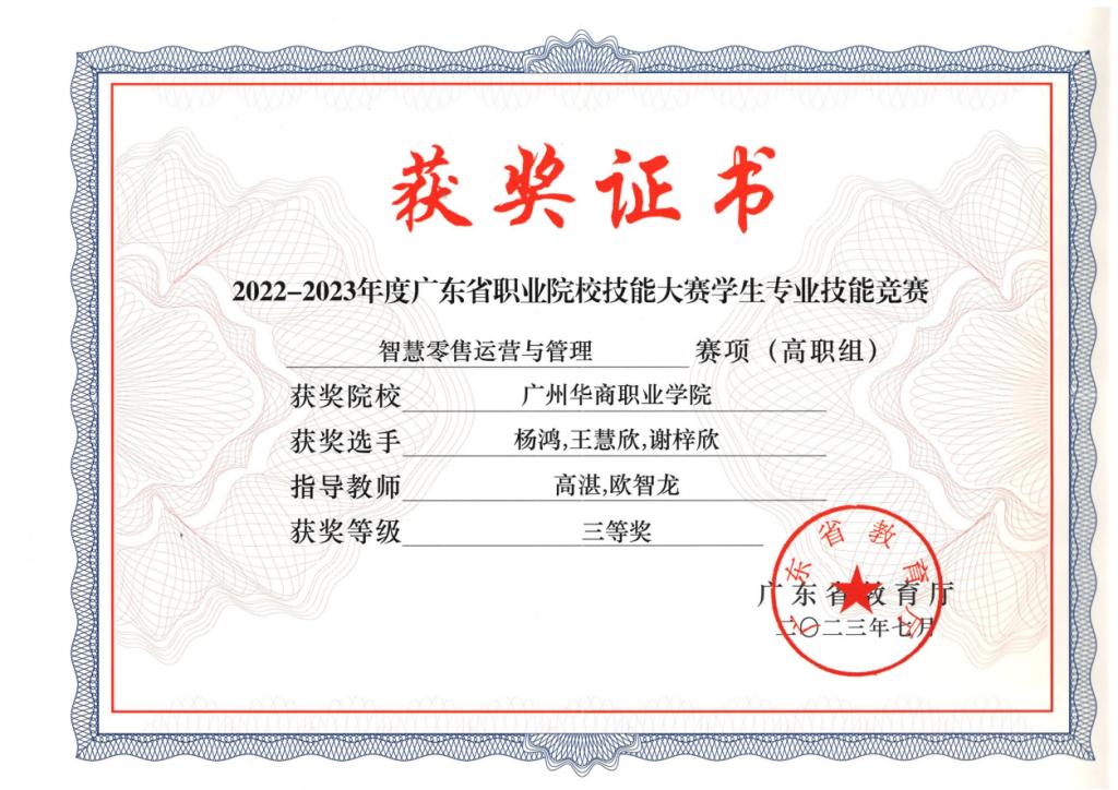 低空经济与商务学院获奖无数,学生累计获省级及以上奖项 300 余项,连续三年获职业院校专业技能大赛会计技能竞赛广东省高职组一等奖、省职业院校高职组供应链管理赛二等奖等殊荣(部分如下)