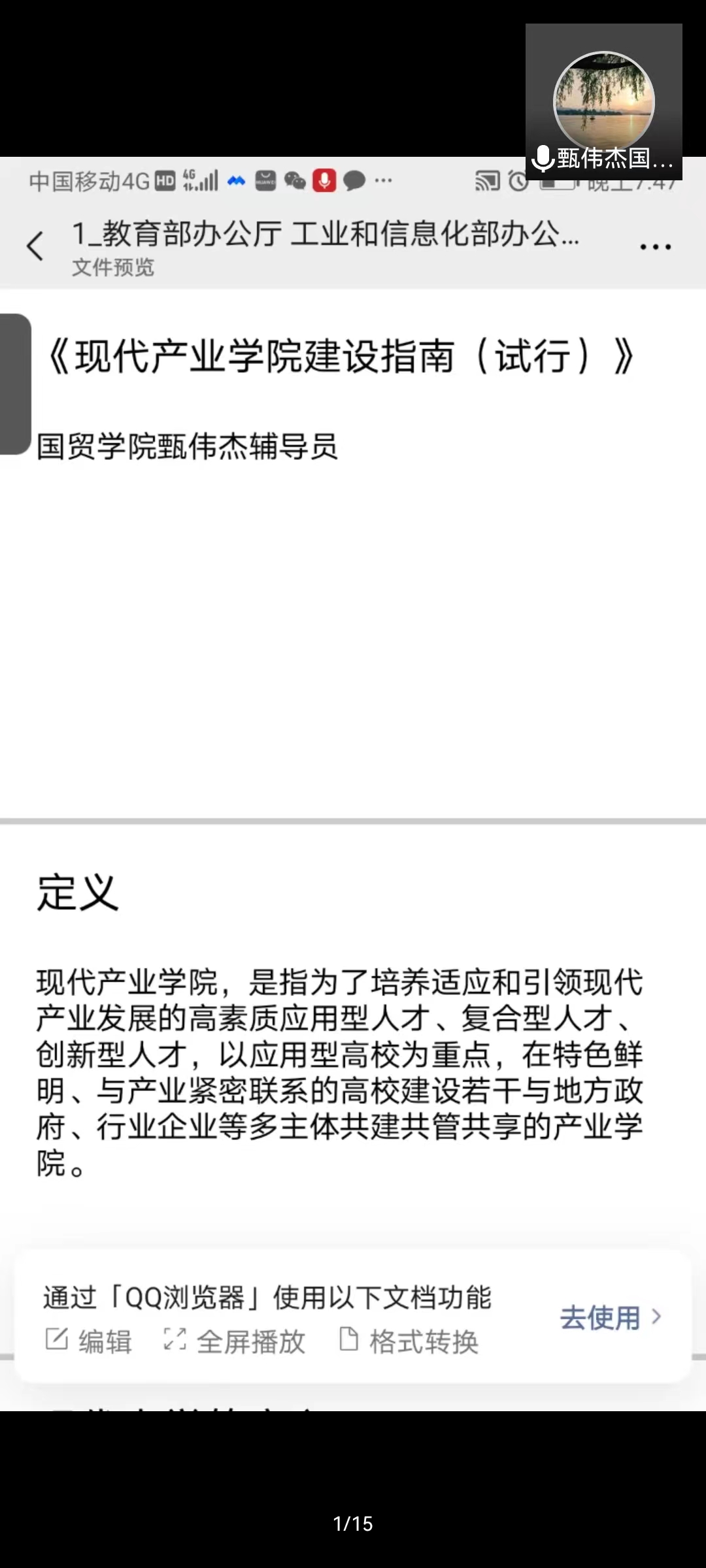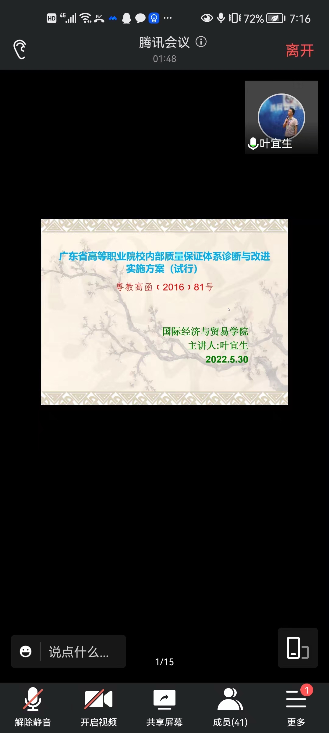 为深入学习贯彻习近平总书记关于职业教育的重要指示精神和全国职业教育大会精神,展示职业教育发展成果,营造职业教育的良好氛围,以实际行动迎接党的二十大胜利召开,根据《教育部等十部门关于做好 2022 年职业教育活动周相关工作的通知》(教职成函﹝2022﹞3 号)精神,国际经济与贸易学院于5月30日在腾讯会议召开线上职教文献文件学习培训,会议由梁悦院长主持,并依次由6名主讲老师分别对6篇文献进行全面解读,我院全体教职工参加本次培训。