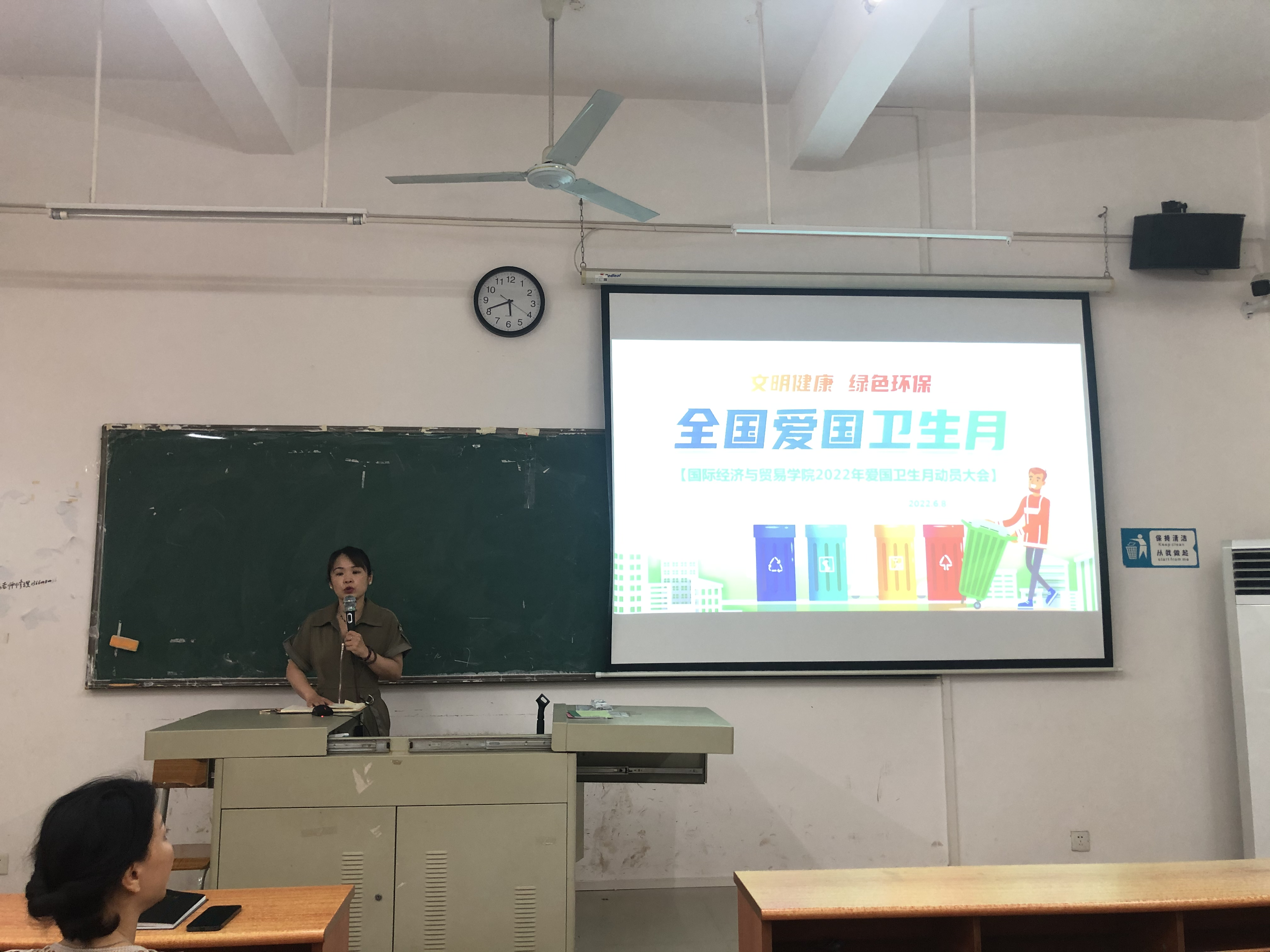 2022 年是爱国卫生运动 70 周年,4 月是第 34 个“爱国卫生月”。为积极营造国贸学院全体师生参与第34个爱国卫生月的良好氛围,2022年6月8日下午17点在博学楼C405教室召开了爱国卫生月宣传动员大会。国贸学院全体教师参加了本次动员大会。