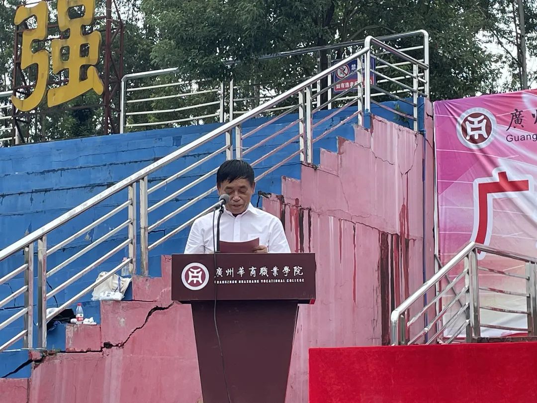 2021年9月14日上午,广州华商职业学院2021级新生开学典礼暨军训动员大会在西区田径场召开。出席本次大会的人员有:校长林琨智教授,校党委书记翁礼成教授,军训团长梁大亨,党委副书记、副校长袁国繁,副校长何伟教授,副校长刘玉东教授,以及各处(室)、教学教辅单位负责人以及7000余名新生、承训部队军官。大会由党委副书记、副校长袁国繁主持。