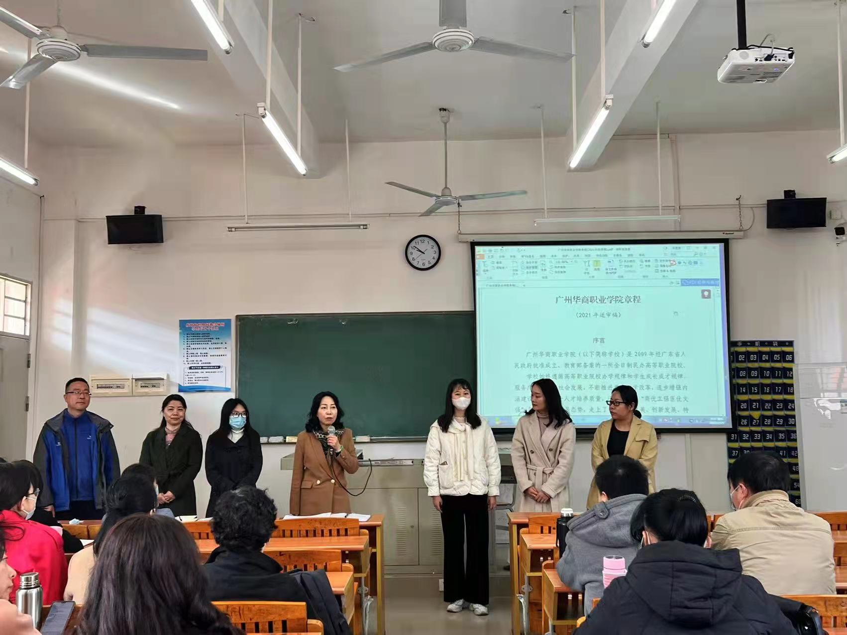 会议第五项议程:由梁悦院长为大家分享广州华商职业学院章程和多篇有关职业教育人才培养的研究论文。希望全体教职工熟知学院章程,明确自身职责和发展方向,结合我院人才培养路径规划,紧抓教学工作重点,革新教学思维和方法,落实“一核心、两能力、三技术”的人才培养模式,力争打造“双高双强”的新型职业人才。