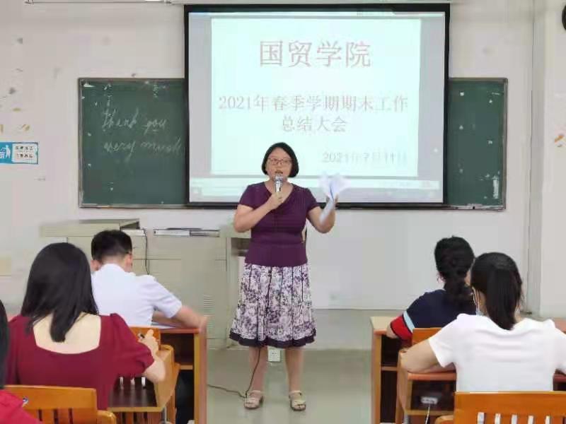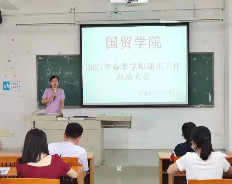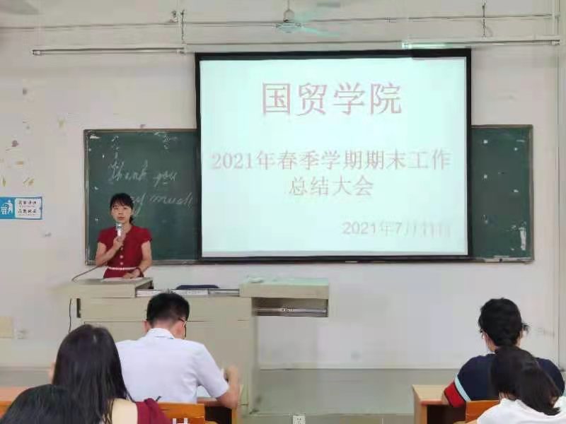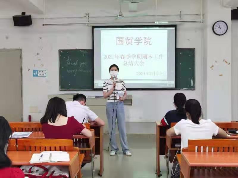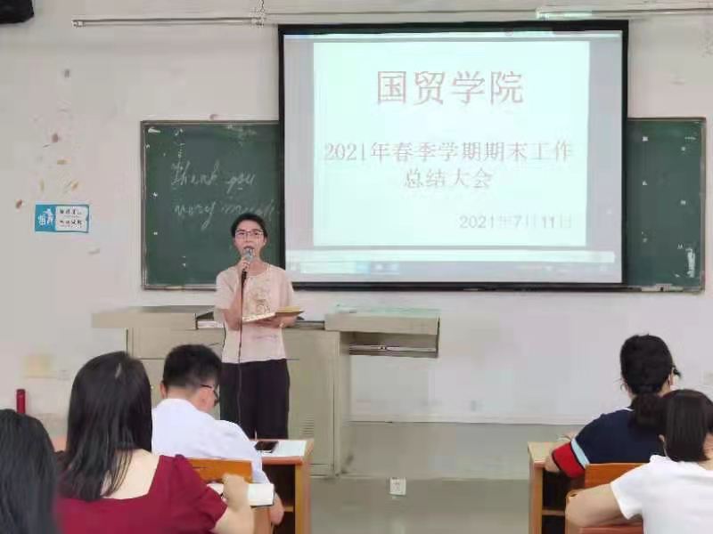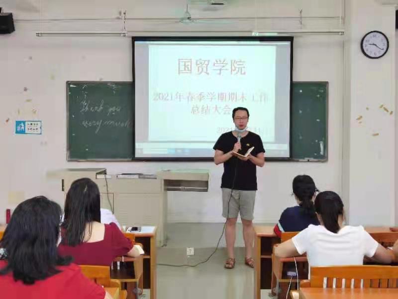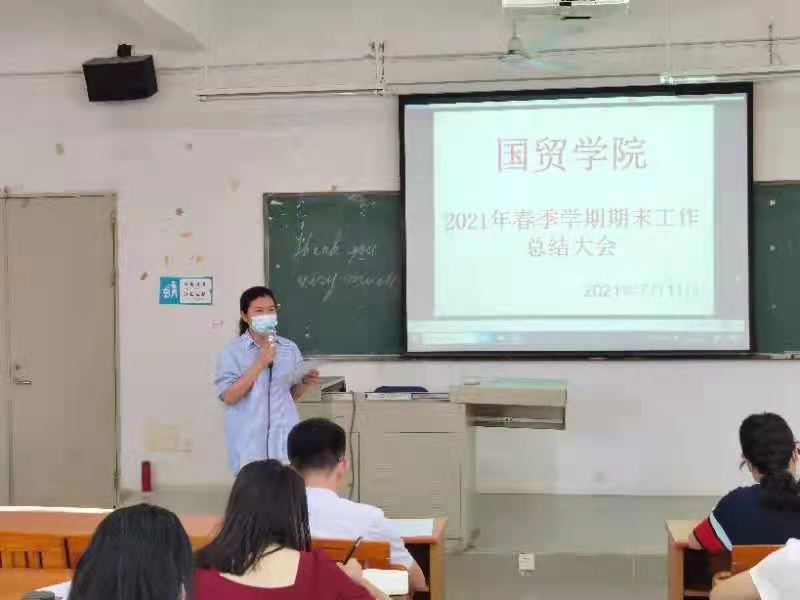 为明确教学理念,分析总结2021春季学期教学工作,进一步完善教学管理。2021年7月11日上午,国贸学院2021春季学期全院总结大会在博B207召开。全体教职工出席了本次大会。总结大会由我院院长梁悦教授主持。