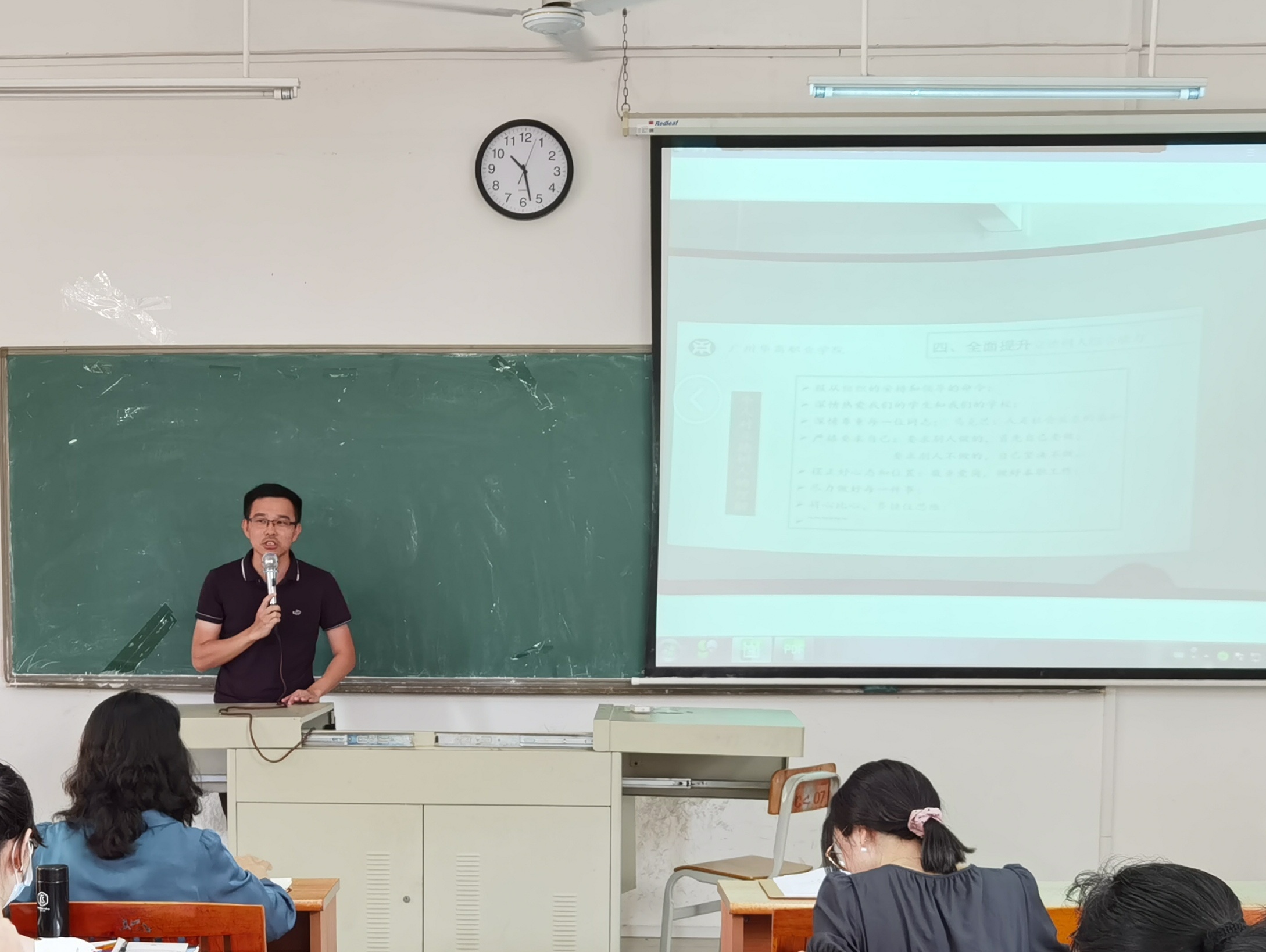 会议开始,黄泽栋党委副书记向大家传达了我校翁礼成党委书记在学校近期工作会议的讲话精神和重要要求。着重强调要全面贯彻党的教育方针,落实立德树人根本任务,希望全体教职工爱岗敬业、坚守教师职业准则,全面提升立德树人的综合能力。