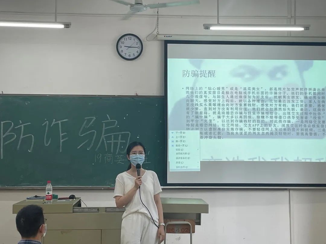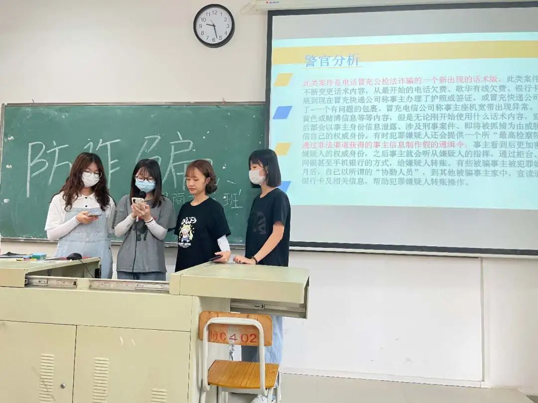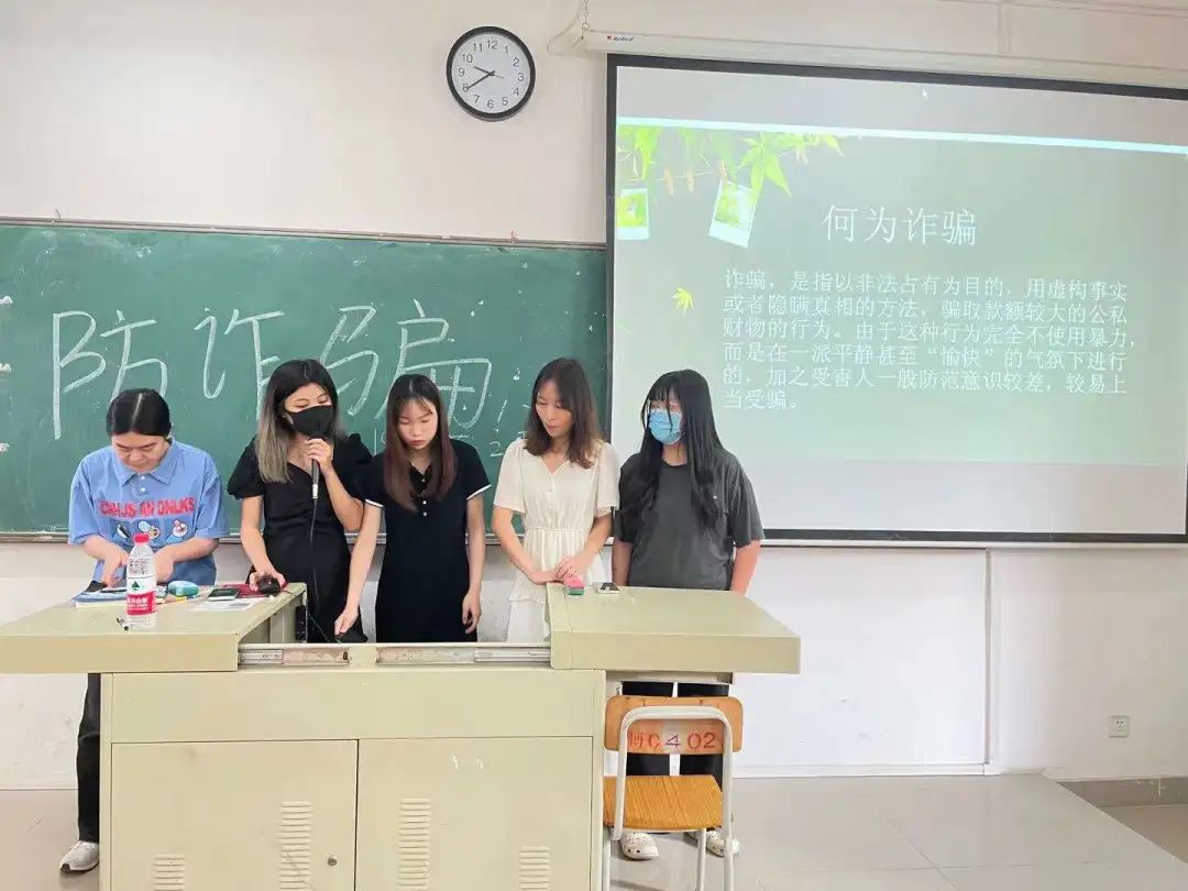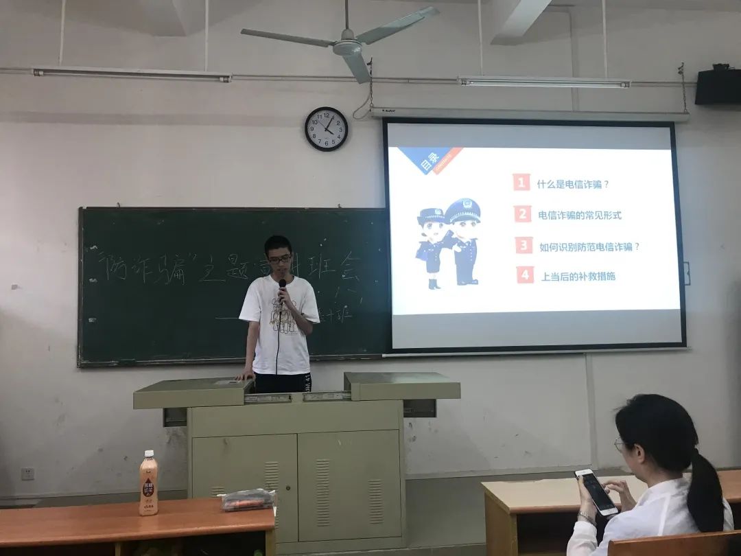会上,辅导员向同学们介绍了典型的电信网络诈骗案例,解析不法分子实施电信网络诈骗的惯用手法、作案方式,并再三提醒大家不要向陌生人透漏自己的身份信息、银行卡密码等重要资讯,掌握识别防范技巧。