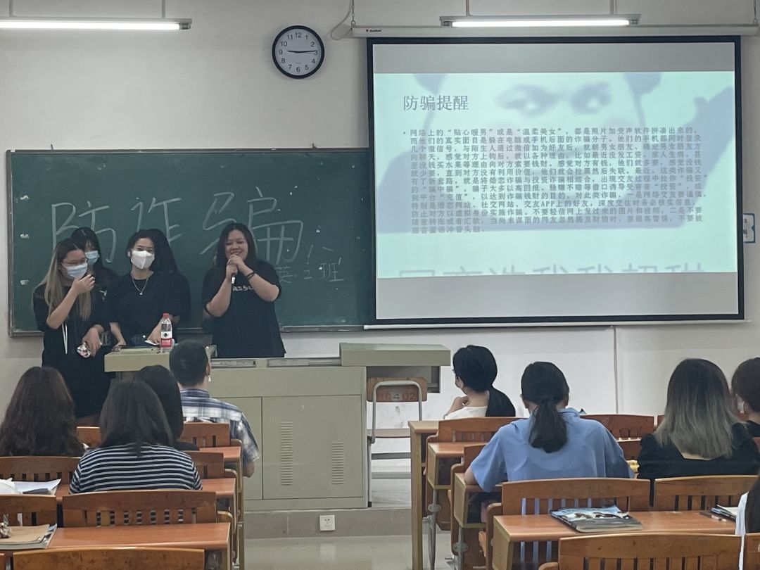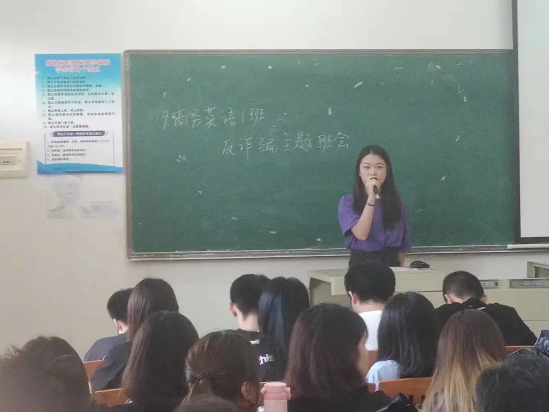 为了扩大防范电信网络诈骗宣传入脑入心,共同营造校园防诈反诈浓厚氛围,提高学生防范意识和抵制电信网络诈骗的“免疫力”,国际经济与贸易学院于第13周组织全院班级召开防诈骗主题班会。会议由各班辅导员主持,全体学生参加。