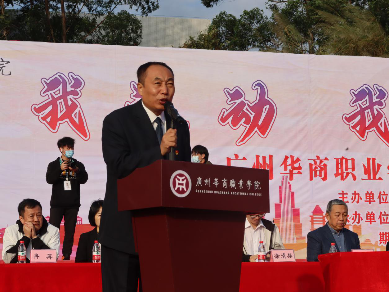 2020年11月27日,广州华商职业学院第八届学校田径运动会,此次校运会在西区操场拉开帷幕,学校领导、各职能部门和二级学院的领导、老师和同学们齐聚一堂,以满怀激情、活力四射的精神风貌参加了此次盛会。在开幕式上,校领导首先进行致辞,对校运会的组织者、参与者和所有到来的观众表示感谢和鼓励,并对接下来的校运会赛程寄予希望。接着国贸学院的啦啦操队伍为校运会做了热场准备,校运会正式开始。