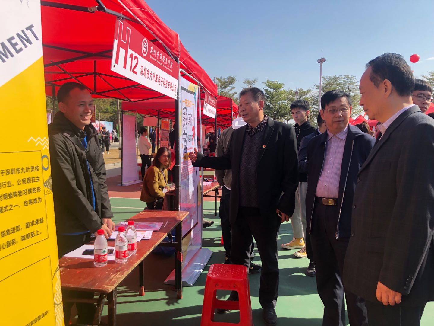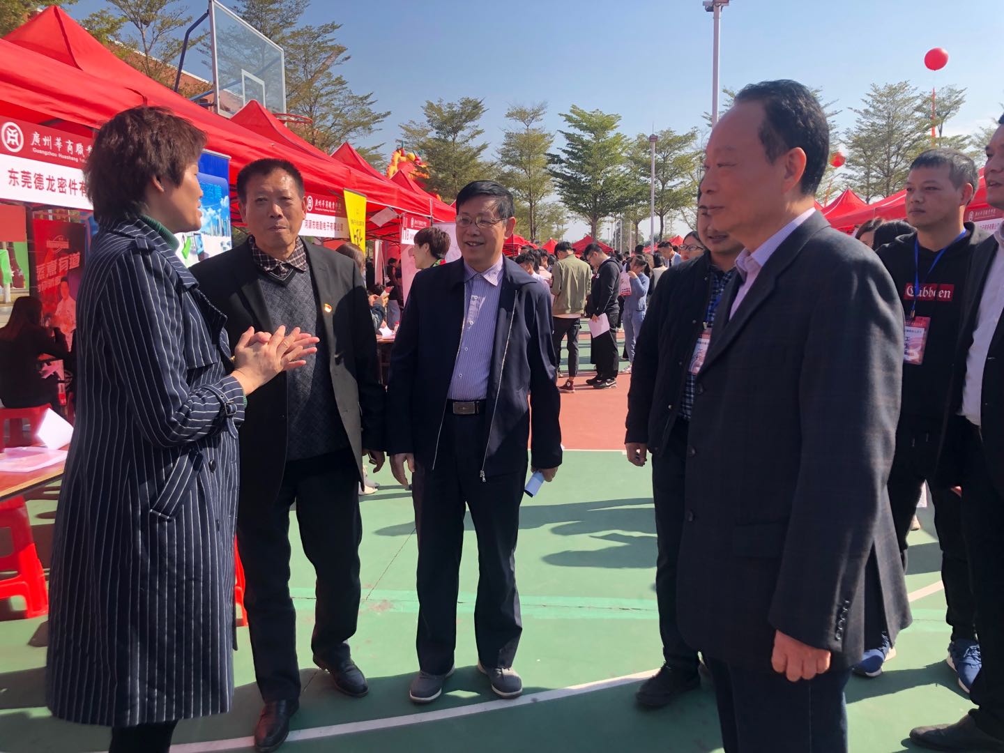 王乐夫校长、黄桂标书记、夏侯富生院长与企业代表交谈