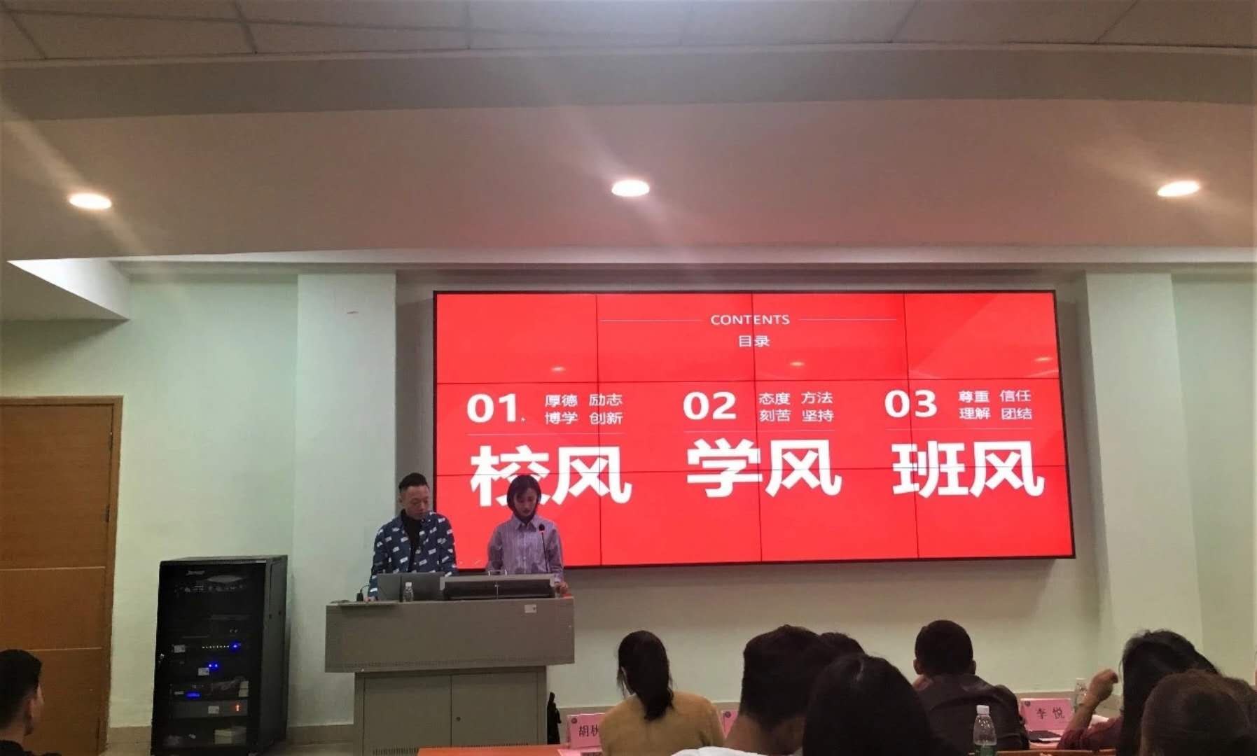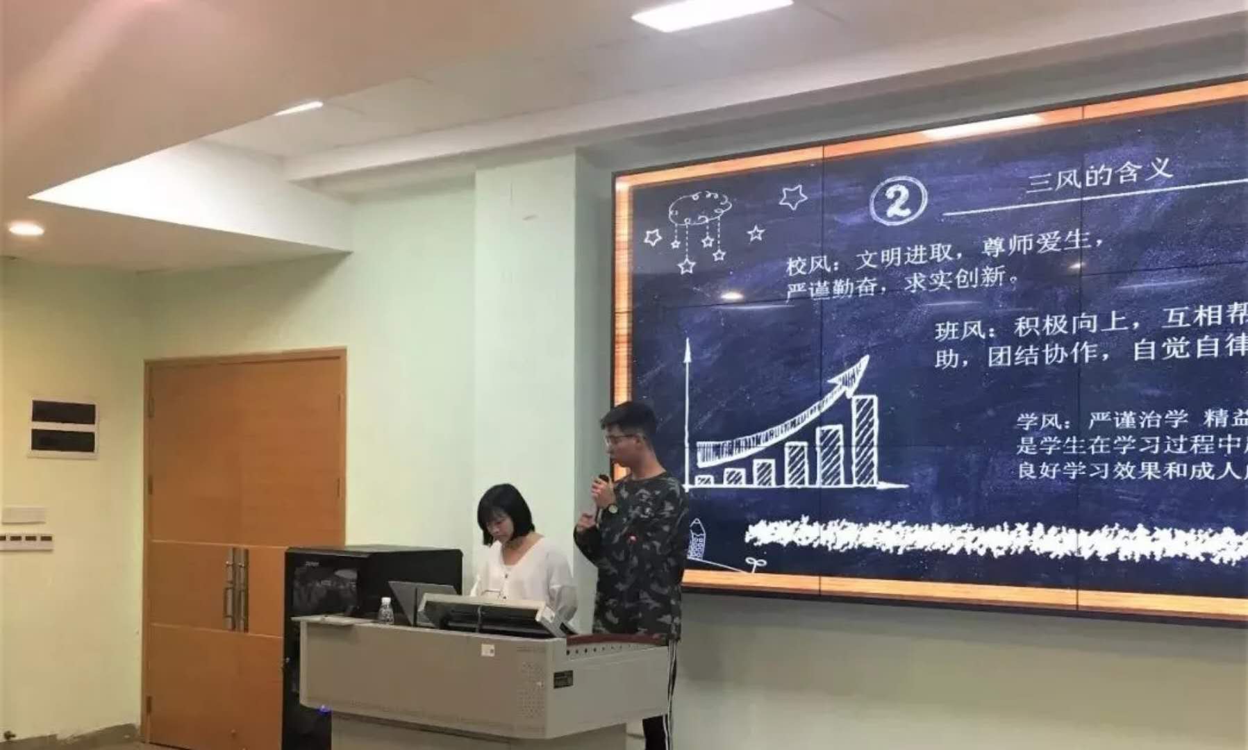 首先,主持人介绍到场来宾,并宣布大会开始。各决赛班级代表分别上台用PPT进行演讲,并向我们介绍三风的含义,讲解三风的重要性。简单亮眼的PPT,幽默风趣的演讲方式,带动了全场的气氛。各班代表演讲完后,艺术团为大家带来说唱表演,老师对各决赛班级的演讲进行评分,之后由主持人宣读结果,并开始颁奖环节。最后,孔凡龙副院长对大会进行总结,首先对获奖班级表示祝贺,并讲到三风建设的意义在班级中起着重要作用,希望同学们能够更加明确学习目标,加强自身素质,提高综合能力。