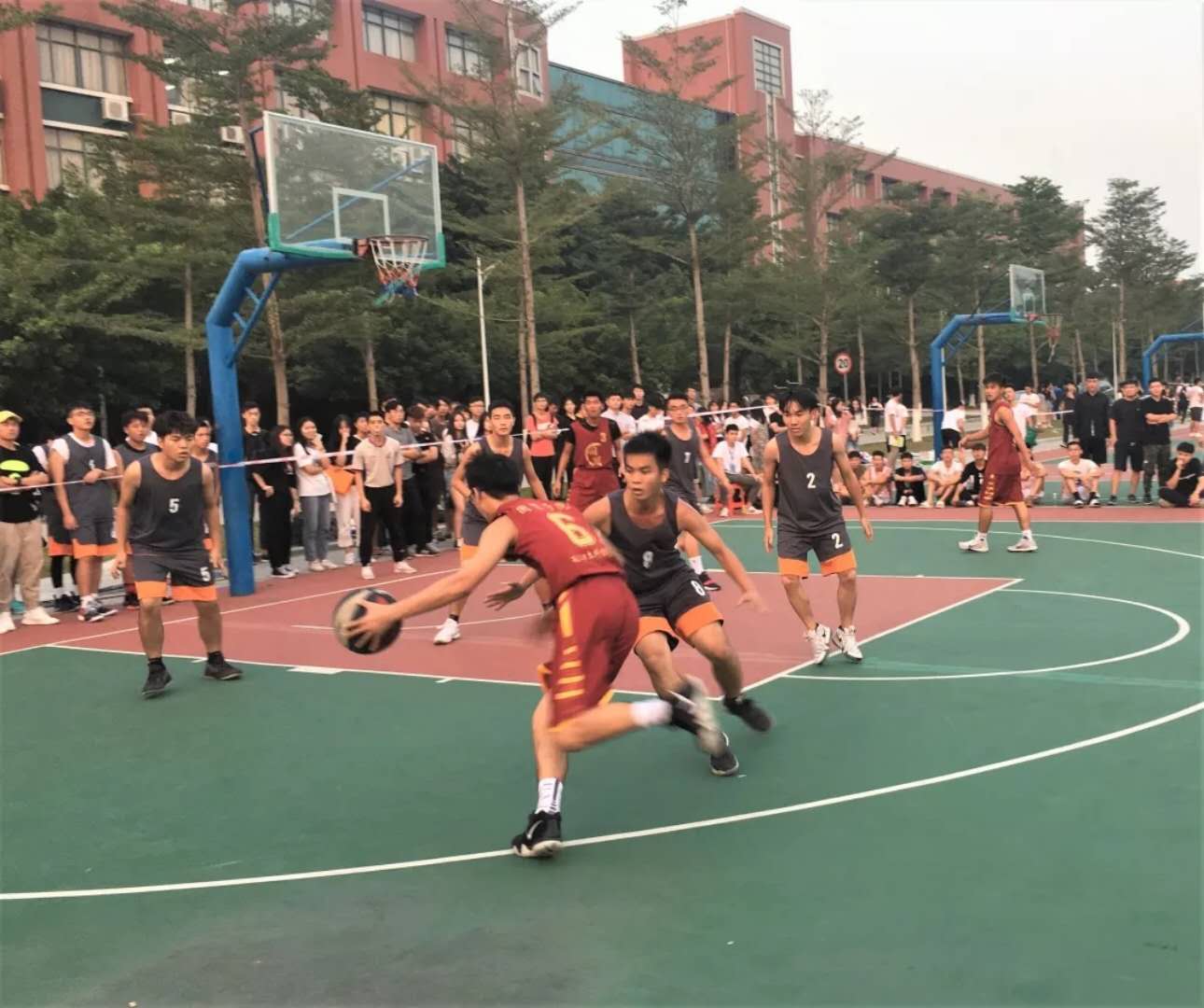 2018年11月7日星期三下午17:00,18级新生在创新楼前1号篮球场举行了院新生杯篮球比赛,此次的参赛队伍是国贸学院与会计学院。