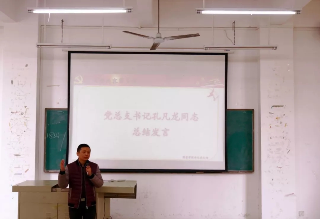最后,由孔凡龙书记作总结发言,希望在座的同学都能在学习上、实践上、工作态度上等方面向一名合格党员不断迈进,同时呼吁当代大学生要有国家意识、忧患意识,要铭记历史!