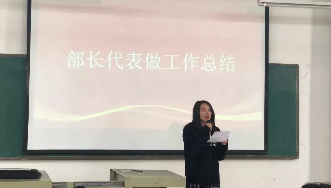 大会伊始,首先由各部门部长对这一学期的工作进行总结,对干事这一学期的努力和付出表示感谢,随后也提出了大家不足的地方,希望大家可以用更加积极的态度来对待以后的工作。紧接着,干事代表发言,感谢老师和师兄师姐们在工作中的指导和支持,希望大家有则改之,无则加勉。随后,主席团代表邱诗弘师兄发言,师兄希望大家能够不忘初心,懂得坚持,牢记我们是一个团体。最后,李悦老师做大会总结,老师希望大家在工作上能明确分工,多学些东西,锻炼自己的处事能力,让大家觉得加入学生会是一个正确的选择。
