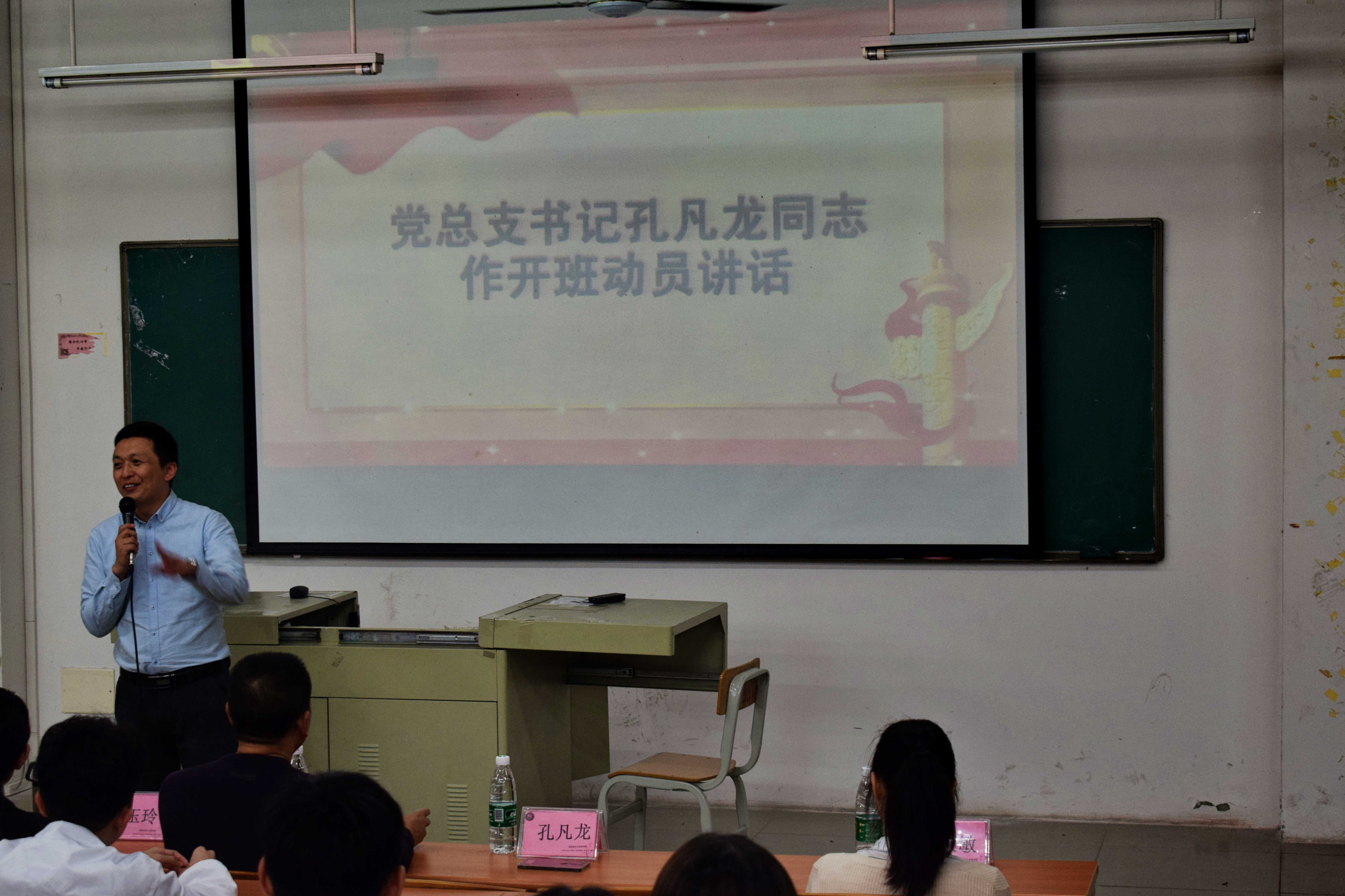 2018年10月16日星期二18点50分,国贸学院第五期党章培训开班典礼暨党章培训第一讲在博C201召开,出席本次开班典礼的嘉宾有:国贸学院夏侯富生院长,国贸学院党总支孔凡龙书记、学生党支部胡秋敏副书记,国贸学院各级辅导员李悦老师、张玉玲老师。