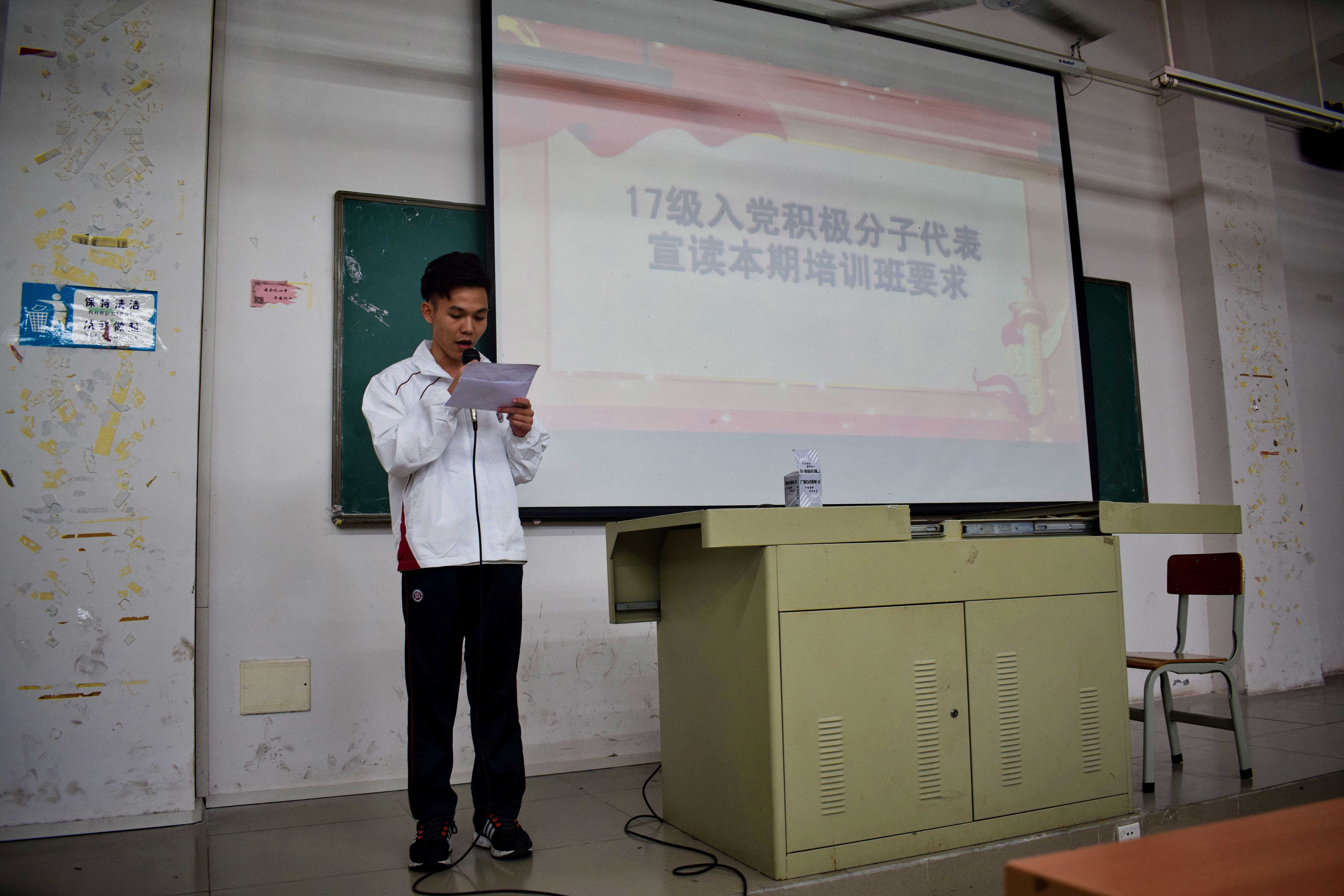 首先,全体师生奏唱国际歌。17级入党积极分子代表发言,并讲到我们应该严格遵守党组织的纪律,以党员的标准严格要求自己。紧接着,孔凡龙书记为本次开班典礼作动员讲话,讲述了中国共产党员对国家的贡献,希望同学们认真学习共产党的政策方针,端正自己的态度。最后,夏侯富生主任讲授党章培训第一讲,在社会主义现代化建设时期,做一名合格的中国共产党党员是非常重要的。