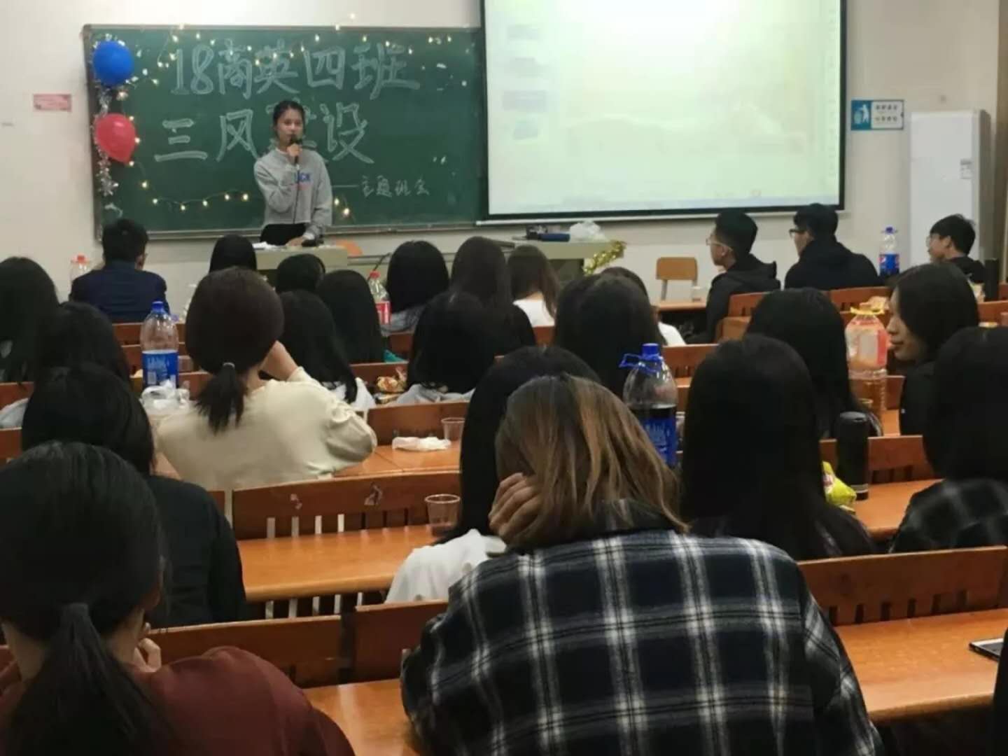 2018年11月12日星期一,各班的三风建设主题班会在博学楼如火如荼进行中。