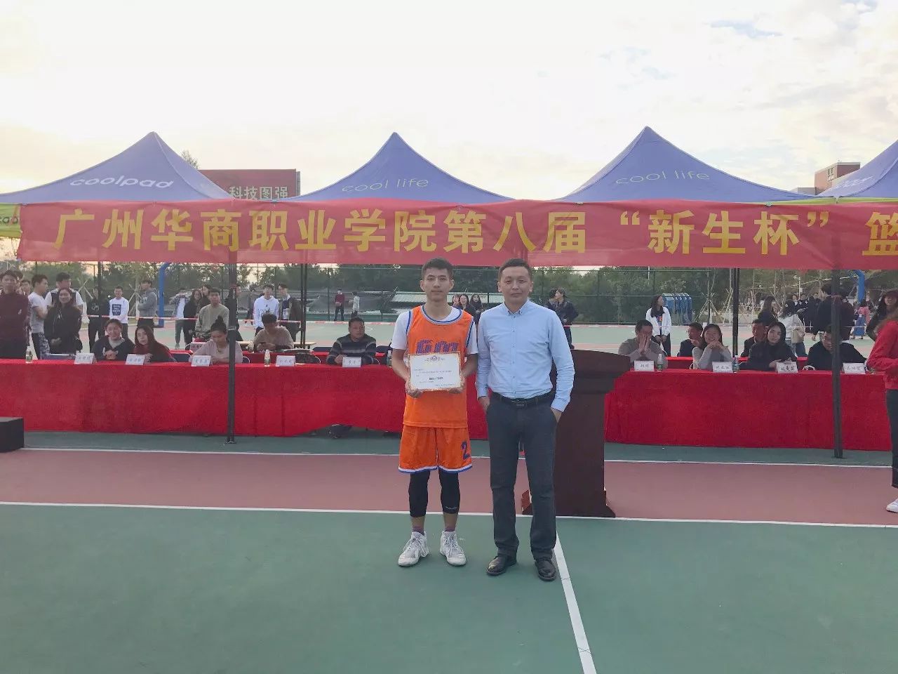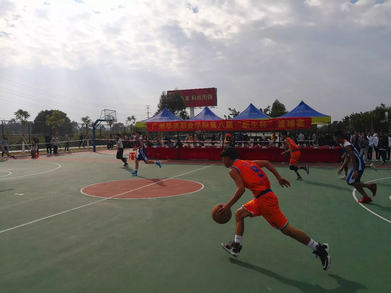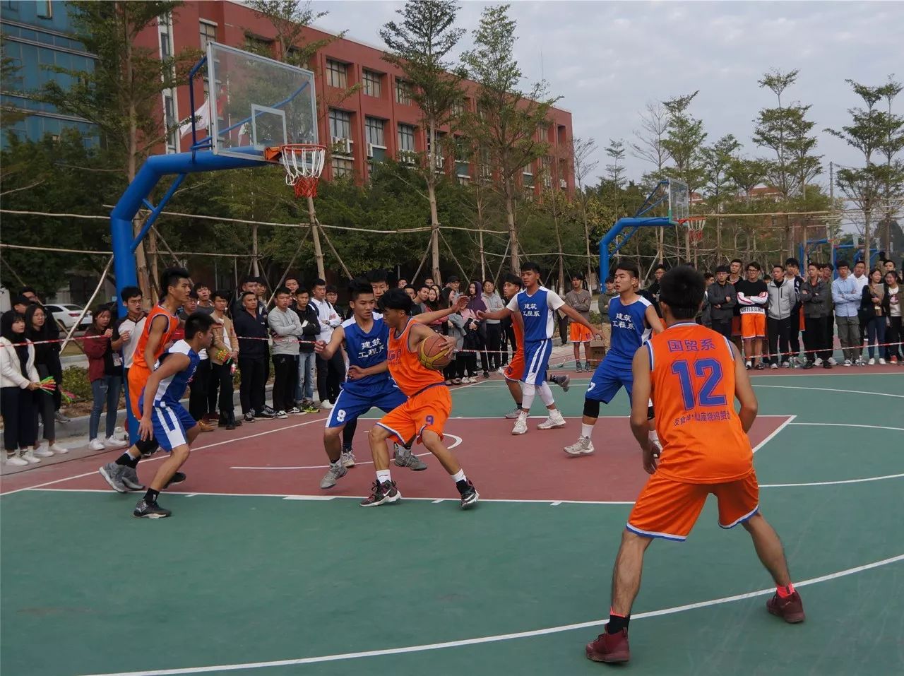 2017年12月12日星期二下午二点半,广州华商职业学院在创新楼篮球场三号场迎来了第八届“新生杯”篮球总决赛。我系与建筑工程系争夺冠军。