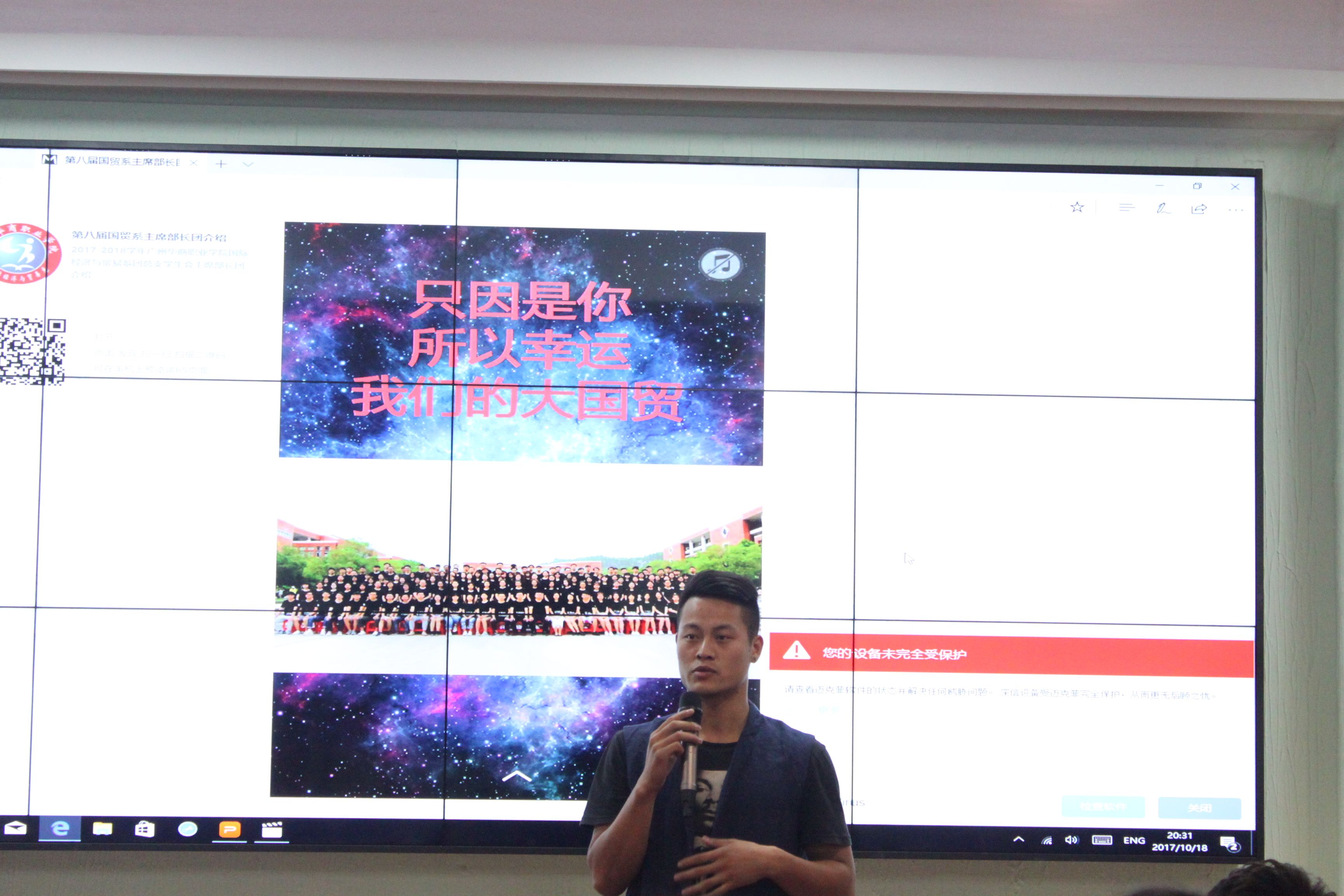 2017年10月18日晚上8点,国际经济与贸易系于博学楼C101召开学生会动员大会,出席本次会议有团总支书记吴仕坚、艺术团指导老师邹子博及学生会全体成员。