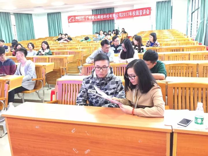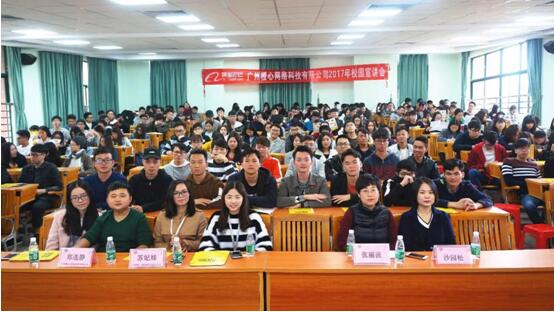 莅临宣讲会的嘉宾有:电子商务学院副主任沙园松,电子商务学院副主任张丽菠,广州橙心网络科技有限公司销售总监苏妃妹,销售经理杨瑞鳞,招聘员郑选静、林金燕。