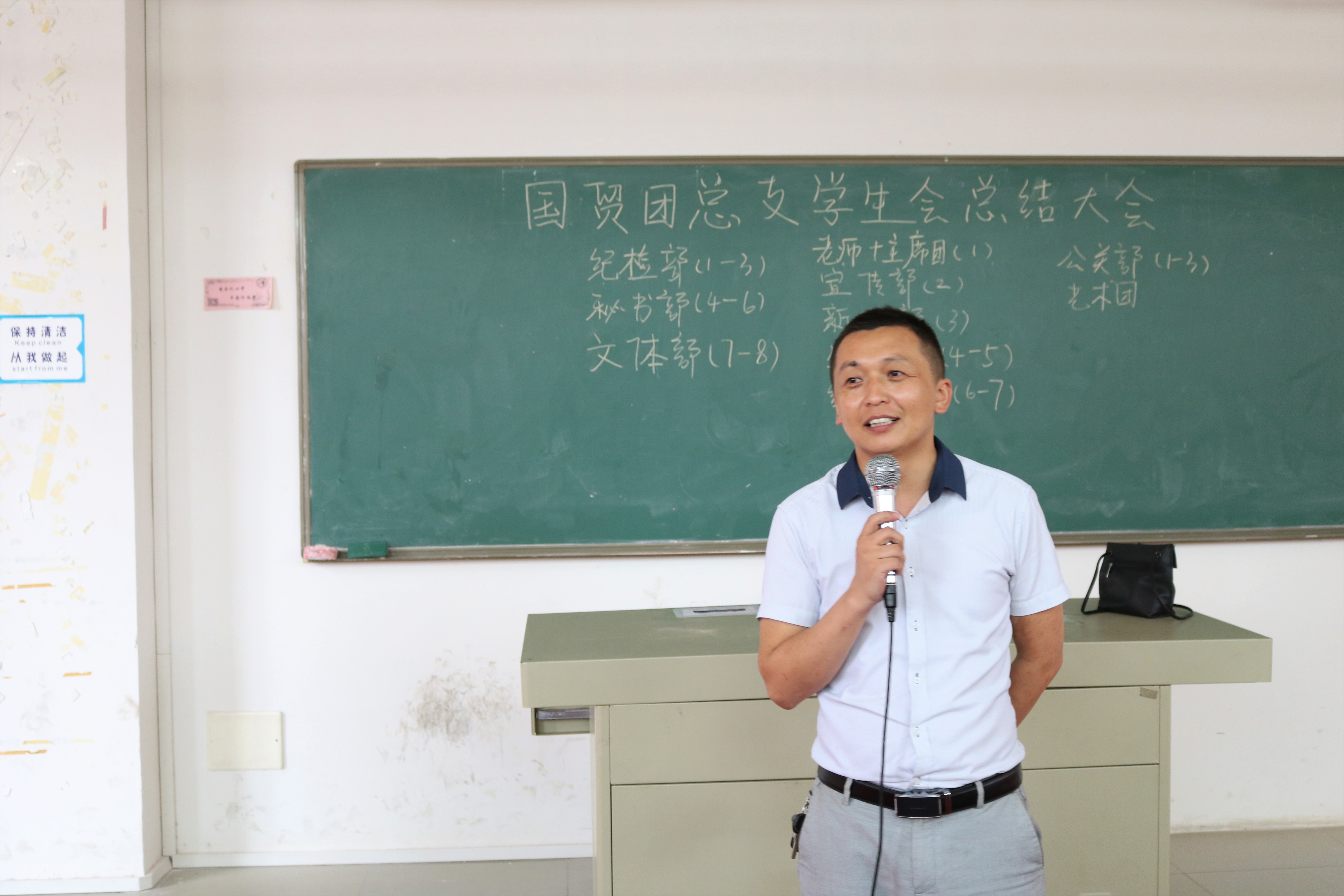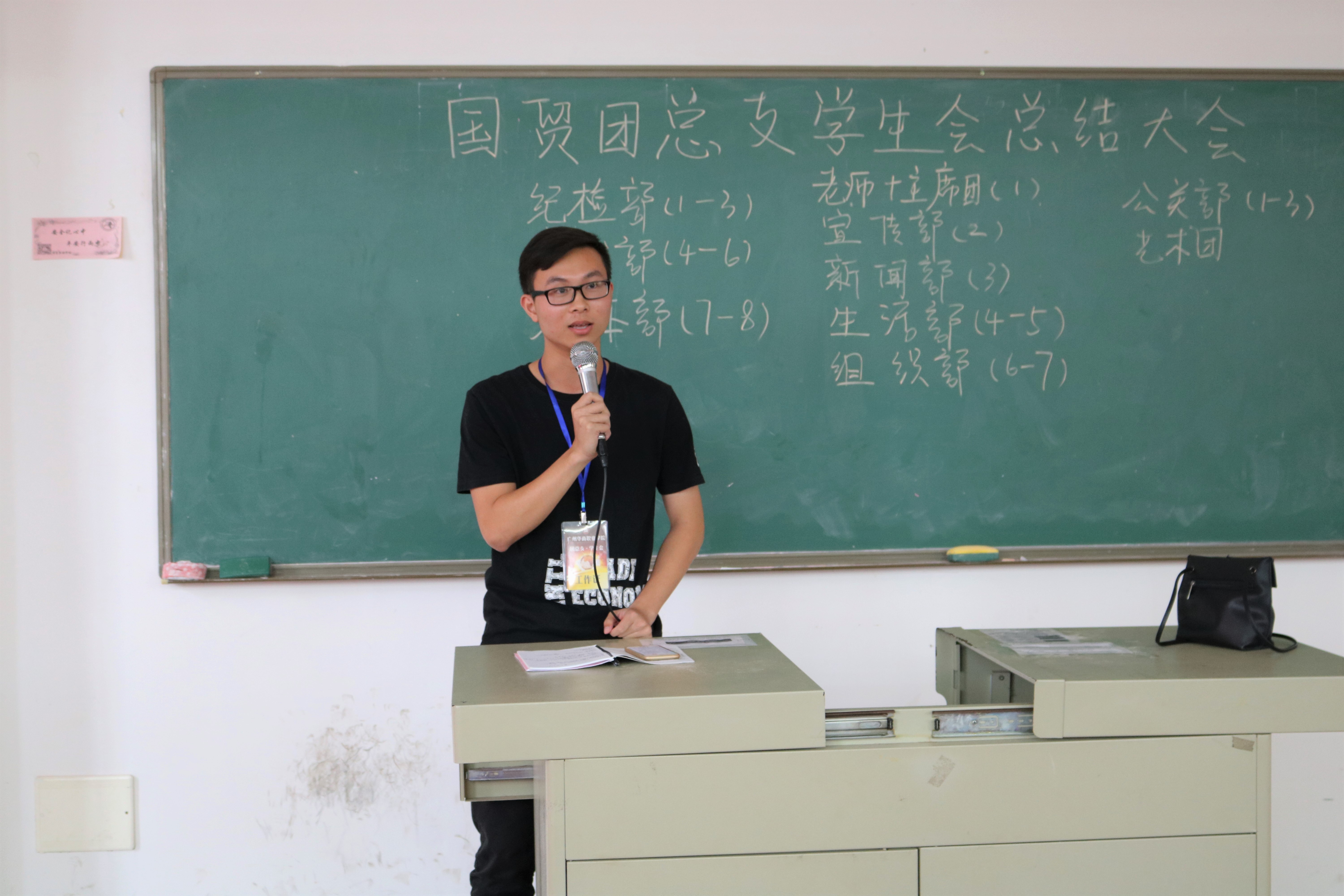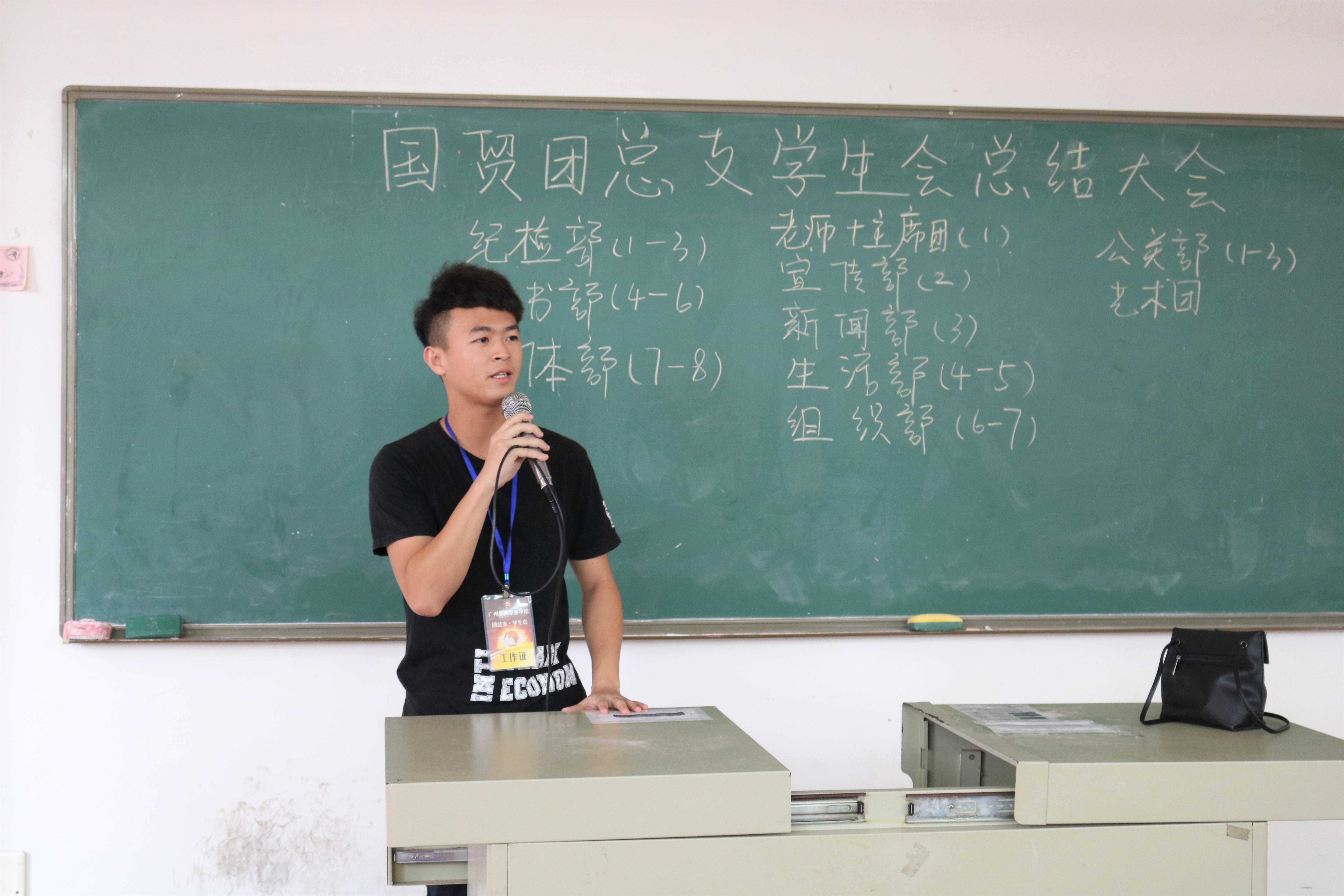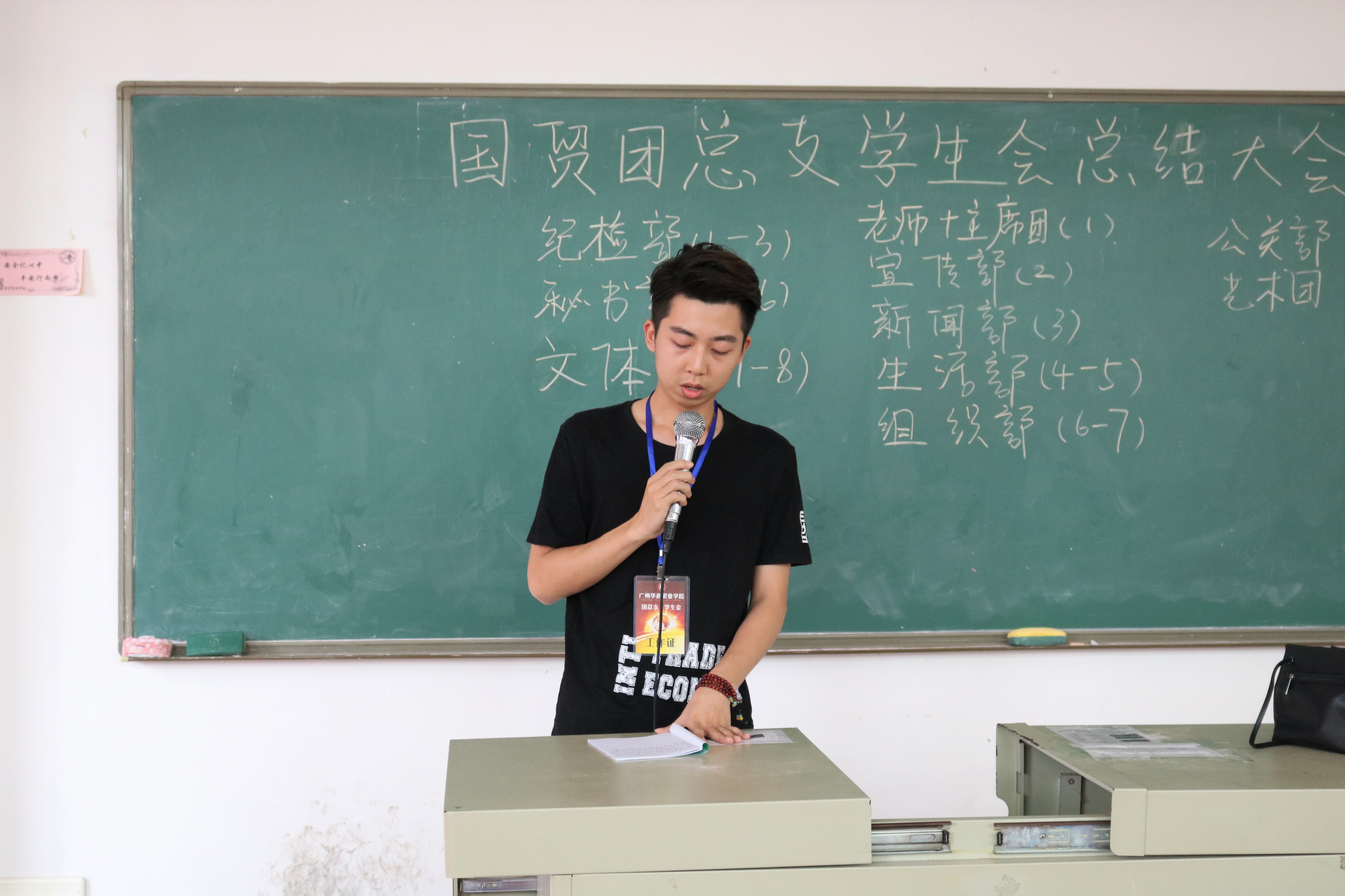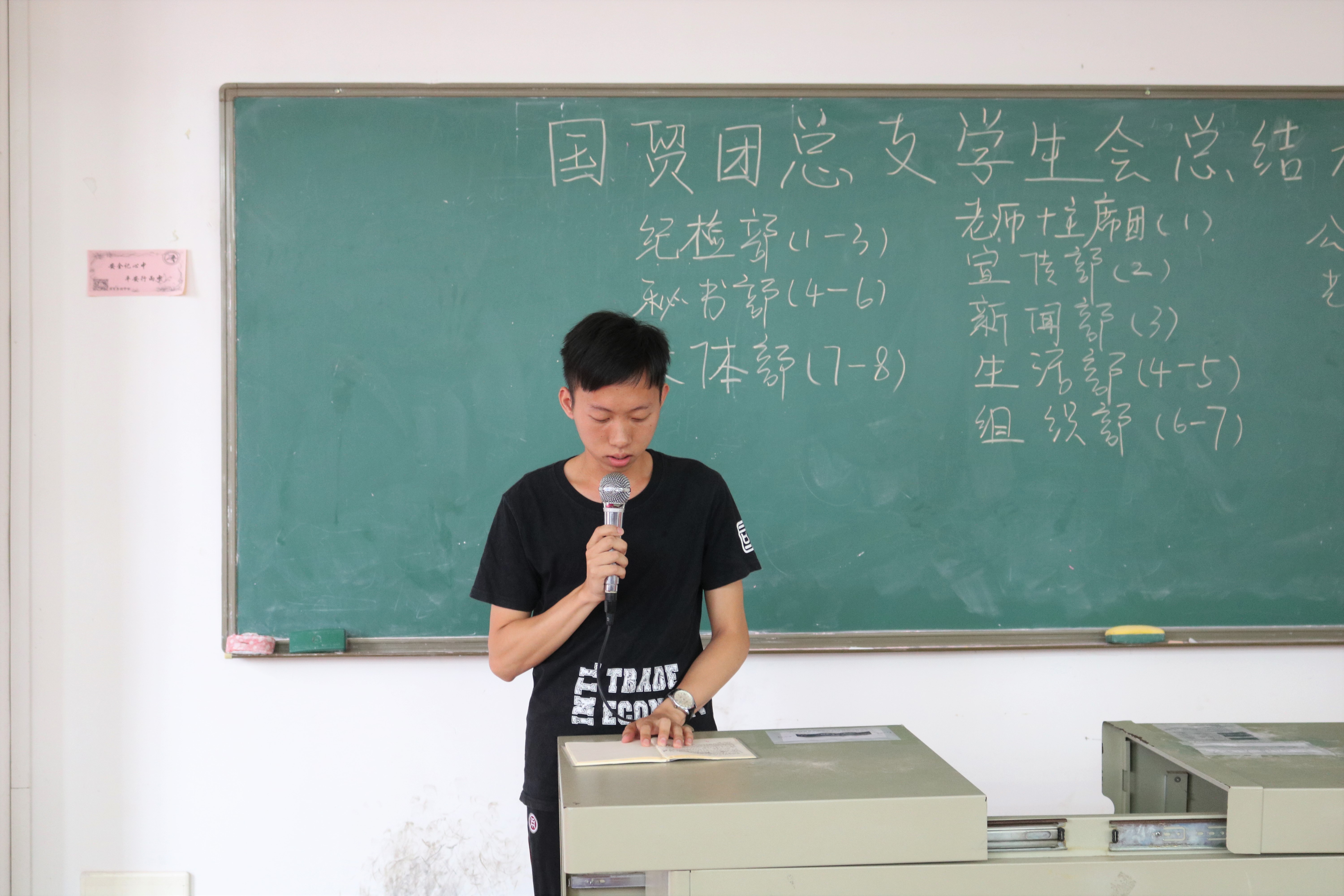 2017年6月14日下午4时30分,我系学生会总结大会于博学楼C201召开。出席本次大会的人员有:国贸系学工助理孔凡龙、国贸系学生会指导老师吴仕坚以及国贸系学生会全体成员。