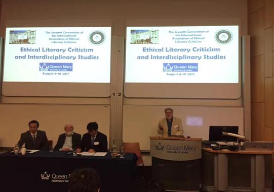 International Association for Ethical Literary Criticism )在英国伦敦大学玛丽王后学院(Queen Mary University of London)人民宫成功举行。本届会议由国际文学伦理学批评研究会、《外国文学研究》编辑部及英国伦敦大学玛丽王后学院联合主办,华中师范大学国际文学伦理学批评研究中心等单位协办,来自中国(包括台湾地区)、美国、英国、德国、丹麦、挪威、波兰、爱沙尼亚、斯洛文尼亚、韩国、日本、越南等 10 多个国家及地区的一百多位学者参与了大会。大会由伦敦大学玛丽王后学院比较文学与文化系主任Galin Tihanov教授主持,国际文学伦理学批评研究会会长、美国人文与科学院院士、耶鲁大学Claude Rawson教授, 国际文学伦理学批评研究会秘书长、《外国文学研究》杂志主编、华中师范大学苏晖教授,国际文学伦理学批评研究会常务副会长、浙江大学外语学院聂珍钊教授,伦敦大学玛丽王后学院校长西蒙·盖斯凯尔教授先后致辞。