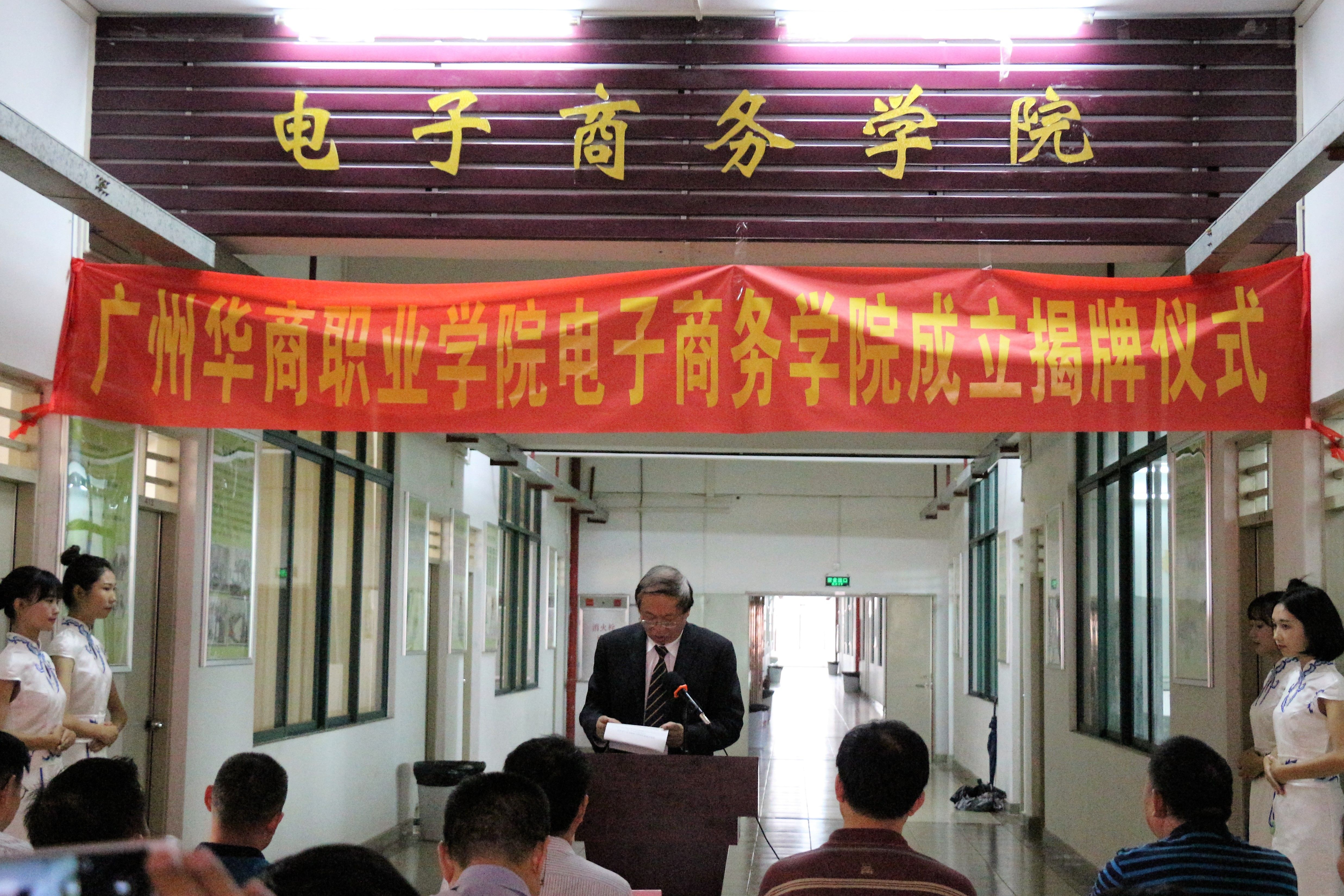 首先,王乐夫院长宣读广州华商职业学院关于电子商务学院成立的决定,并与电子商务学院院长祁建为电子商务学院揭牌;随后中国职业技术教育学会国际商务教育研究会跨境电子商务专业委员会常务副主任郑江敏发表讲话;接着,电子商务学院院长祁建就目前电商形式进行发言;最后,行业代表徐龙副主任、