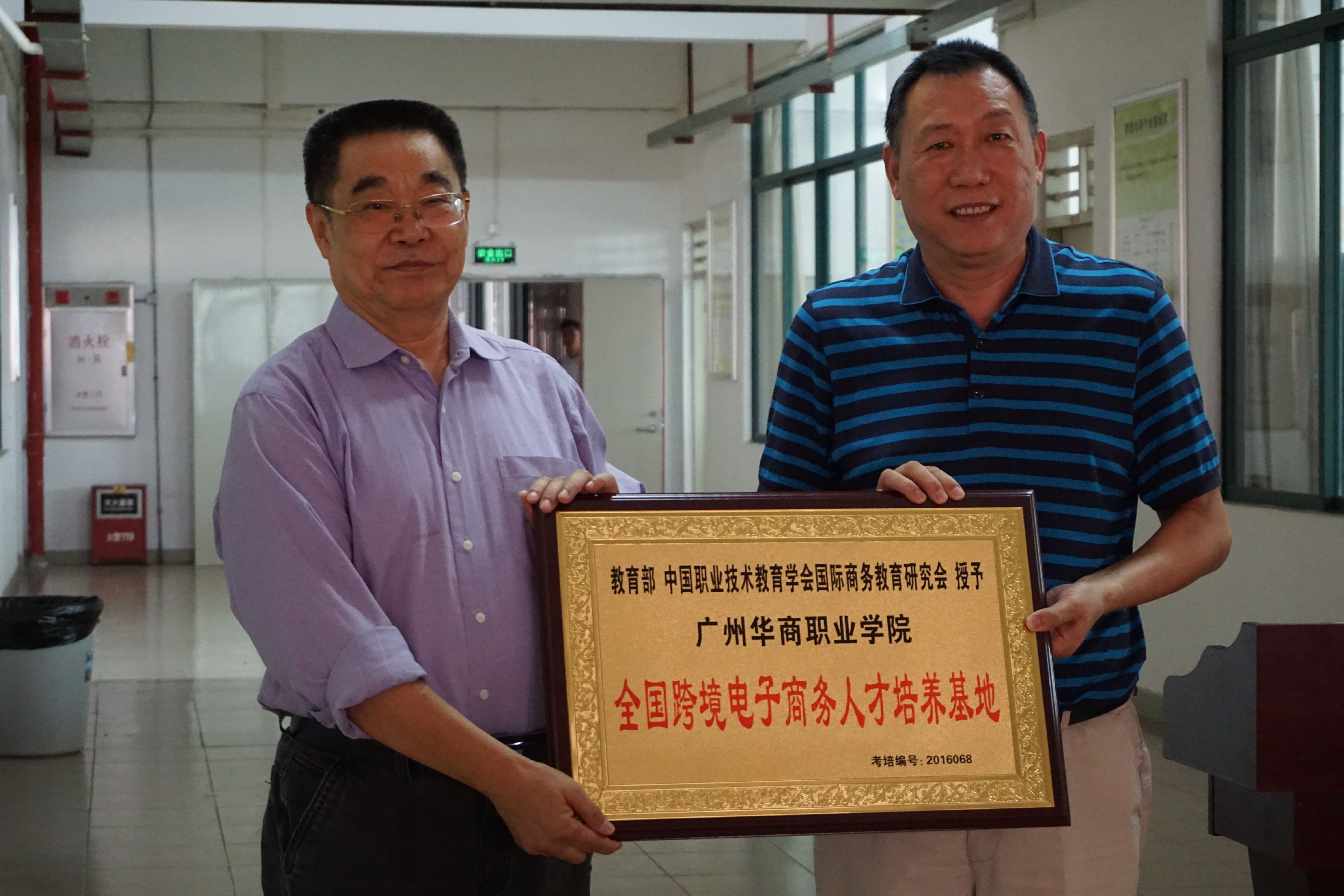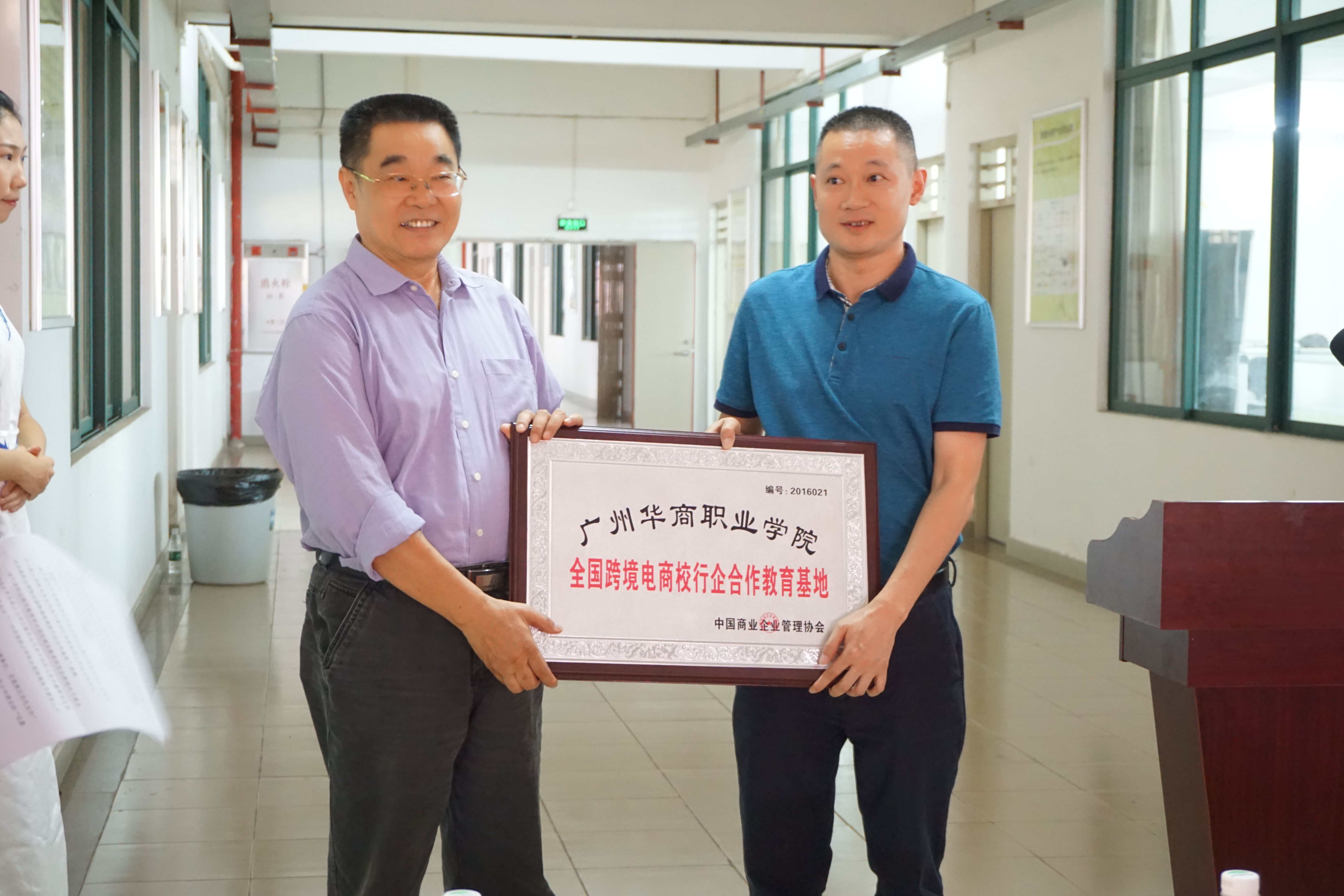 郑江敏常务副主任、黄汉忠董事长分别向广州华商职业技术学院全国跨境电子商务人才培养基地授牌。