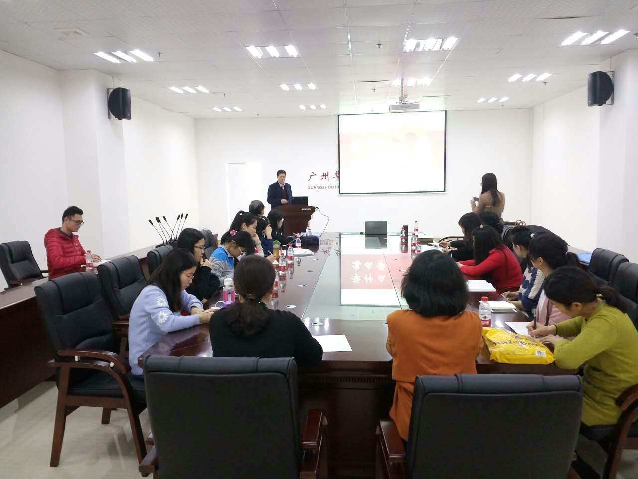 2016年3月23日下午四点,国贸系大学英语教研室和商务英语教研室交流会在崇贤楼一楼会议室召开。国贸系主任祁建、广东外语协会理事长潘雪峰、大英教研室主任龙玲珑、商英教研室主任杨思柳、罗序梅教授、金石教授、张真教授及大英、商英教研室教师出席本次会议。