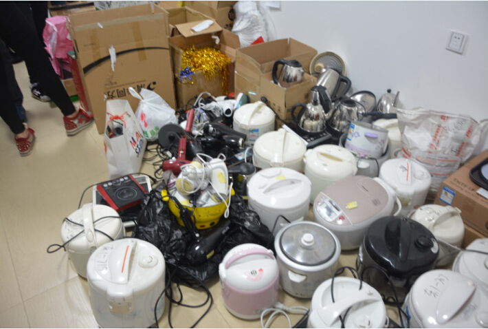 由学工助理孔凡龙、团总支学生会指导老师吴仕坚、以及我系各辅导员带领学生会干部组成“突击”队,对我系宿舍大功率电器及违禁品进行查处查收。