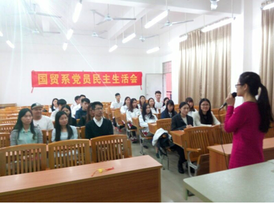 11月25日下午16:00国际经济与贸易系2013级党支部党员大会在博学楼C栋303室成功举行。本次大会流程分为两部分:第一部分是预备党员转正,第二部分是党组织民主生活会,大会由党支部副书记余泳主持,参加此次大会的还有国贸系党总支书记孔凡龙、国贸系2014-2015级党支部书记石笑丽以及本支部全体党员、所有转正党员和预备党员。