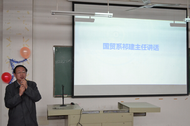 国贸系祁建主任上台讲话,主任在讲话中明确表示,在这三年里要将电子商务专业的学生打造成各个企业最渴望得到的电商人才。