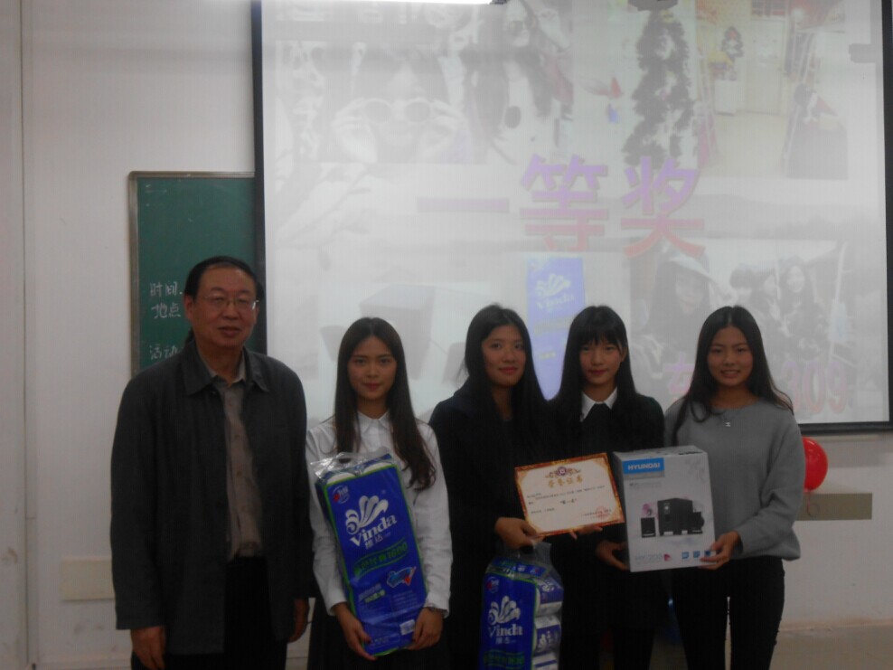 1月5日晚7点15分,由国贸系举办的雅舍评比大赛颁奖晚会在博学楼C201隆重举行。国贸系祁建主任、党总支书记潘虹老师、国贸系团总支李琴英书记及各位辅导员出席了本次大会。