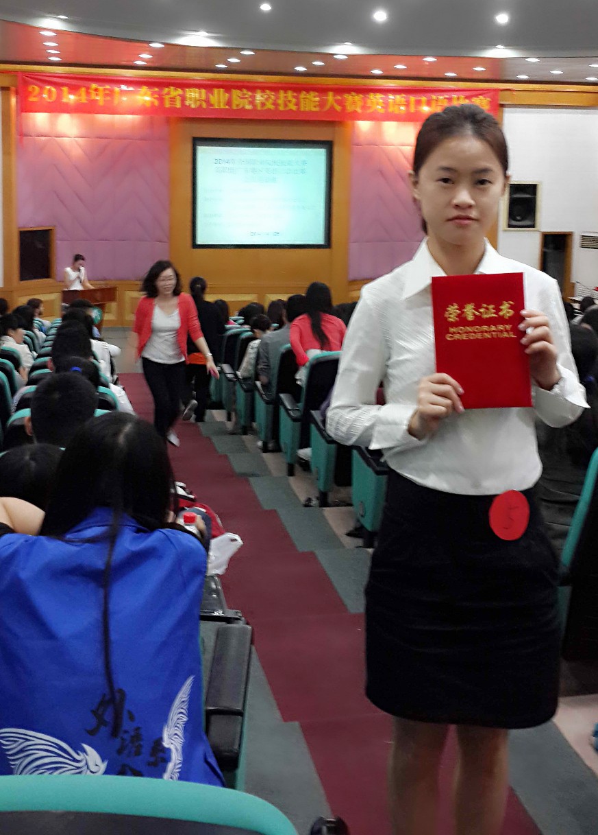 全国职业院校技能大赛是同等比赛中社会影响力最大的全国性比赛。能够在此类比赛中获得奖项,无疑是一所学校办学水平、师资队伍和学生素质的体现。现在,我系很荣幸地宣布,2012级文秘1班李堡焮同学在全国职业院校技能大赛高职组广东省选拔赛英语口语比赛公共英语组别中荣获三等奖!汤素芹老师获优秀指导教师奖!