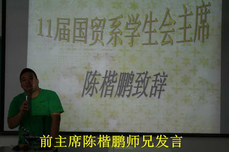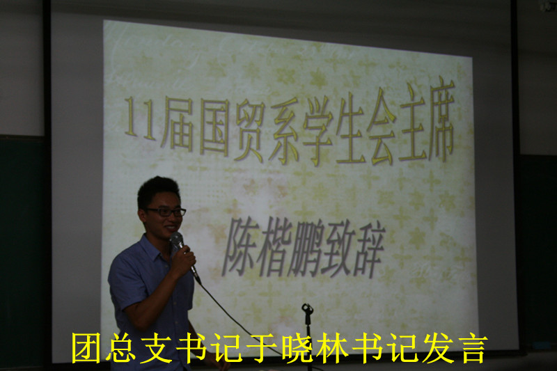 11月11日晚19点30分,国贸系在博学楼B501举行学生会老干部欢送会。团总支书记于晓林老师、国贸系石笑丽老师、11届学生会主席陈楷鹏师兄、副主席彭惠文师姐、李振宇师兄以及各前任部长出席了本次活动。