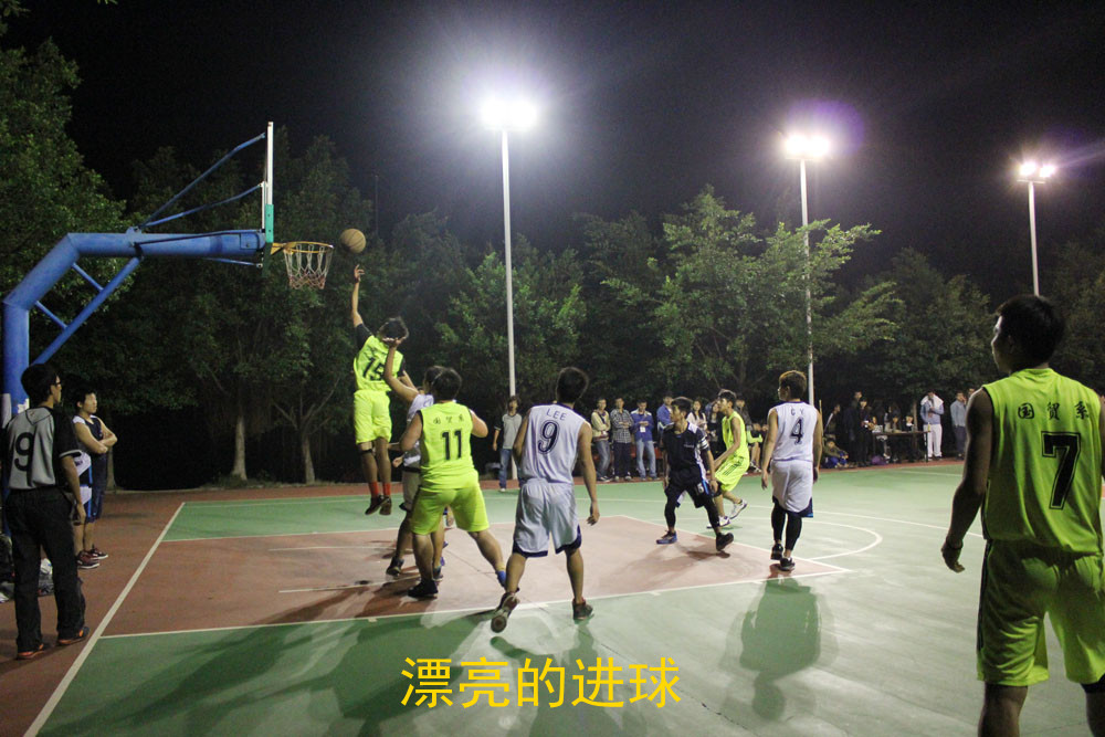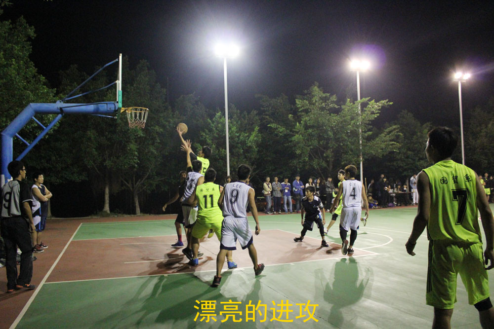 2013年11月19日晚8点半,广州华商职业学院新生杯篮球赛国贸系与信息工程系的比赛在明星饭堂前的篮球场上率先打响。