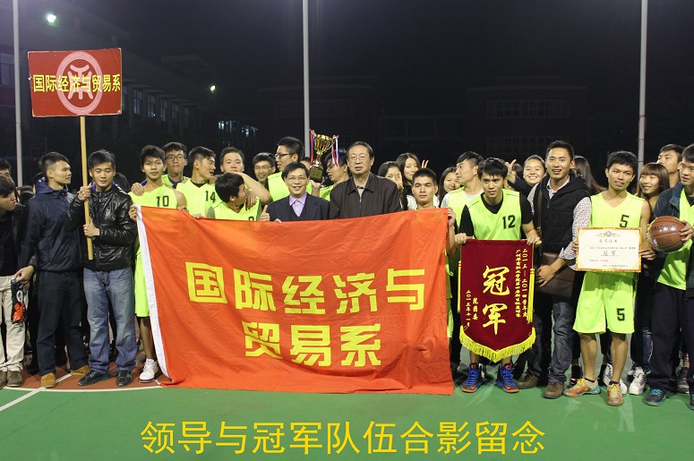 12月3日晚上7点,2013届新生杯篮球赛冠军赛于明星饭堂前的灯光篮球场隆重举行,本次比赛由国贸系对阵工商管理系。我院党委黄桂标书记、学生处袁国繁副处长以及我系祁建主任等领导出席观看球赛。