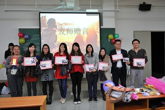 多年同窗情,今昔恨离别,前方路坎坷,愿君各安好。在这个毕业的季节,广州华商职业学院国贸系2011级文秘一班于2013年12月3日7点半在博学楼A401拉开了毕业班会的帷幕。出席老师有辅导员石笑丽老师,就业指导杨思柳老师,班主任林楚贝老师,以及科任老师:于春秀、汤素芹、潘虹、何宛萍、黄金荣、苏伟钧。此次班会班会班会由班长古双琼和黄周洲理主持。