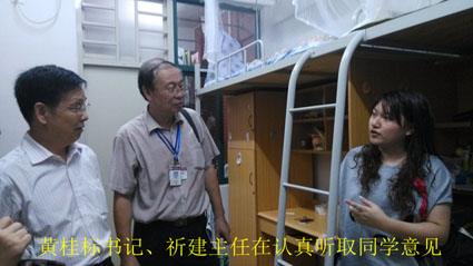 2013年9月9日晚7点30分,广州华商职业学院国贸系举行了新生宿舍走访活动。我院党委黄桂标书记,国贸系祁建主任,曹迪副主任,国贸系党总支副书记潘虹老师,以及我系各专业指导老师,辅导员,辅导员助理,参加了本次宿舍走访活动。