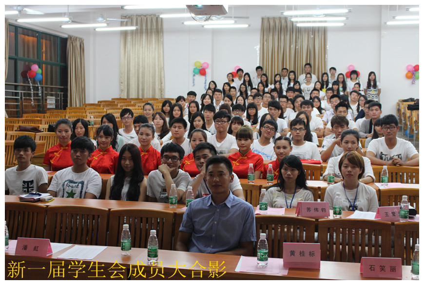 会议在伴随着团歌的响起中拉开序幕。学生会前任主席陈楷鹏总结学生会过去一年的工作情况,同时也流露出对学生会大家庭的不舍及寄予期望。随后,于晓林老师宣读学生会新一届干部名单,并由前、新任学生会主席进行团旗交接仪式。新任主席林郁松发出:“路是走出来的,历史是书写出来的,让我们一起努力,书写国贸系的辉煌历史”的励志壮语后,并带领新一届学生会成员庄严宣誓。