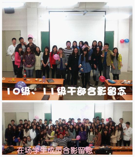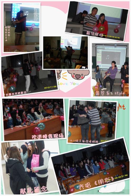 2012年11月29日晚7点30分国贸系“第二届学生会干部欢送会”在博学楼B407举行。10级学生会主席部长、第三届学生会全体成员参加了本次活动。