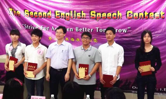 本次第二届英语演讲比赛决赛由国贸系团总支书记苏伟钧老师和来自国贸系11文秘3班的杨明月同学担任英文主持人。比赛流程分两大块进行,参赛选手分为两组,第一组选手为:1号黄皓映(国贸系11级文秘2班)、2号黄子阳(会计系10级会计9班)、3号叶倩敏(国贸系10级商英2班)、4号李志广(11级建筑工程造价4班)、5号何伟光(会计系10级会计9班)、6号彭妍敏(国贸系10级商英1班)。