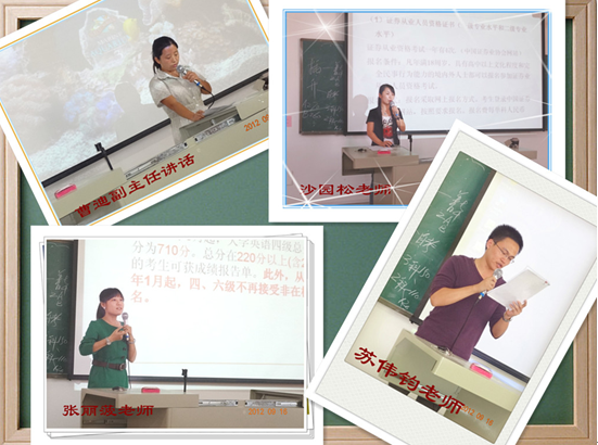 3、各专业指导老师作资格证书考试介绍,当中发表讲话的有,金融考证辅导:沙园松、潘飞静,英语考证辅导:张丽菠、龙玲珑、庄馥妃,外贸考证辅导:曹迪、刘汝成。