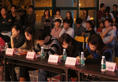本次大赛的主持设计成中英文版本进行,由国贸系辅导员苏伟钧老师和国贸系2010会展班学生徐晶担任主持人,特邀了国贸系系主任周岳梅主任、院团委吴伟福老师等嘉宾,特邀国贸系英语老师杨宇韬、杨思柳、张丽菠、潘虹、何剑芬、金盈盈担任大赛评委。国贸系商务英语教研室主任杨宇韬老师用英语发表了热情洋溢的祝贺致辞。
