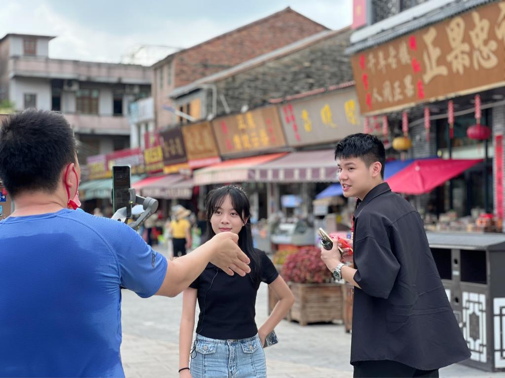 增城正果作为中国荔枝之乡和千年古镇,美名远扬,此次荔枝文化节更是吸引了众多游客来此游玩,现场游人如织,助农直播行动也持续升温。25日、26日,周胜初、吕春怡两位学生和廖卓艺、朱小兰老师继续带大家深入荔枝节之旅,在直播过程中,除了介绍正果荔枝,主播们还与观众热情互动,走入正果老街美食特色店及活动现场,全方位向观众们介绍正果农特产品、旅游景点、人文故事等,让线上朋友们一饱眼福,有如亲临。这种新型沉浸式的直播带货方式,一方面大大助推了大家来此游玩的兴致,另一方面也受到老街店主们的支持与感激,大家纷纷表示希望有更多的机会让大家了解正果,增加家乡产品曝光度、宣传度。