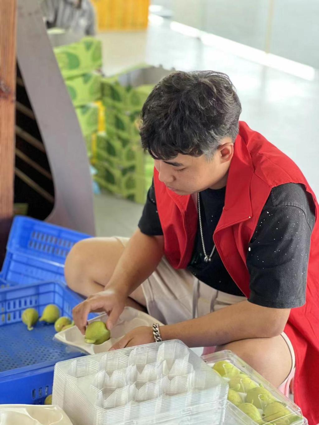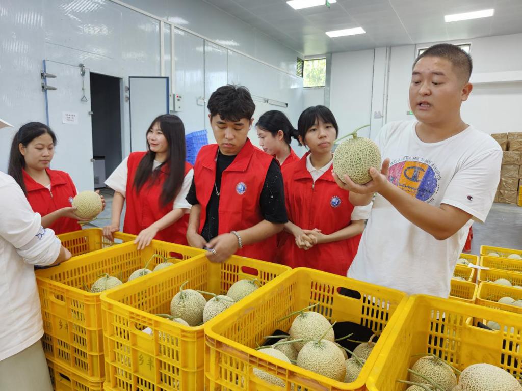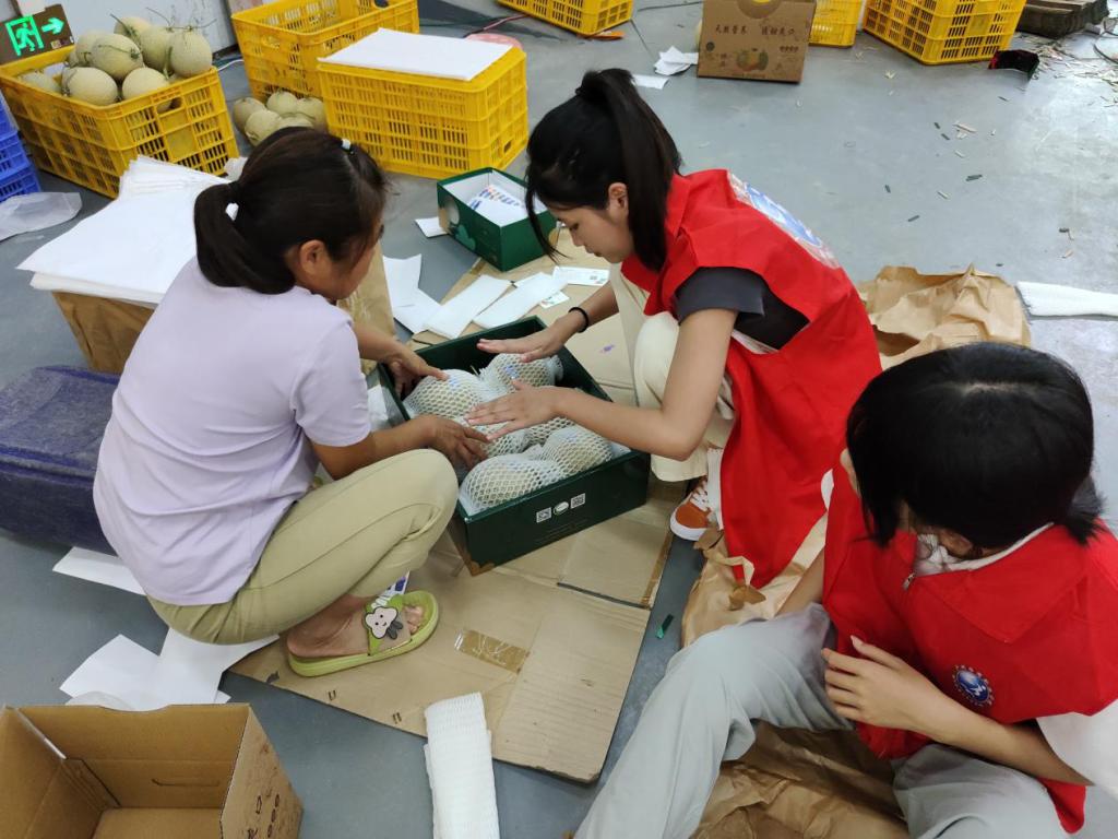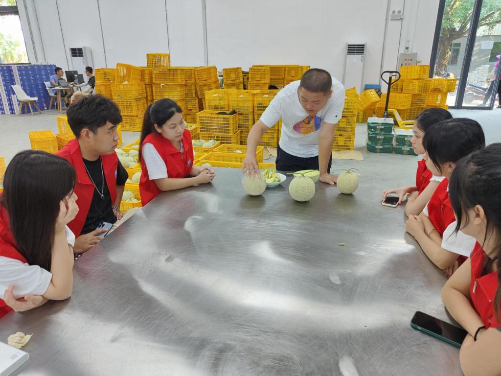 我们来到的是增城乡丰水果产业园,这里主打的是高端水果,当季的水果有葡萄阳光美人、无花果、网纹哈密瓜。参观了水果棚后,我们开始今天的主要任务:打包、选品鉴品等,期间也带领顾客去参观种植。室外活动期间阳光猛烈,但炎热的夏日没有吓退我们勇于探索的勇气。在第一天我们就了解和掌握了如何鉴别网纹瓜的优次好坏,期待后面几天可以学习到更多东西!